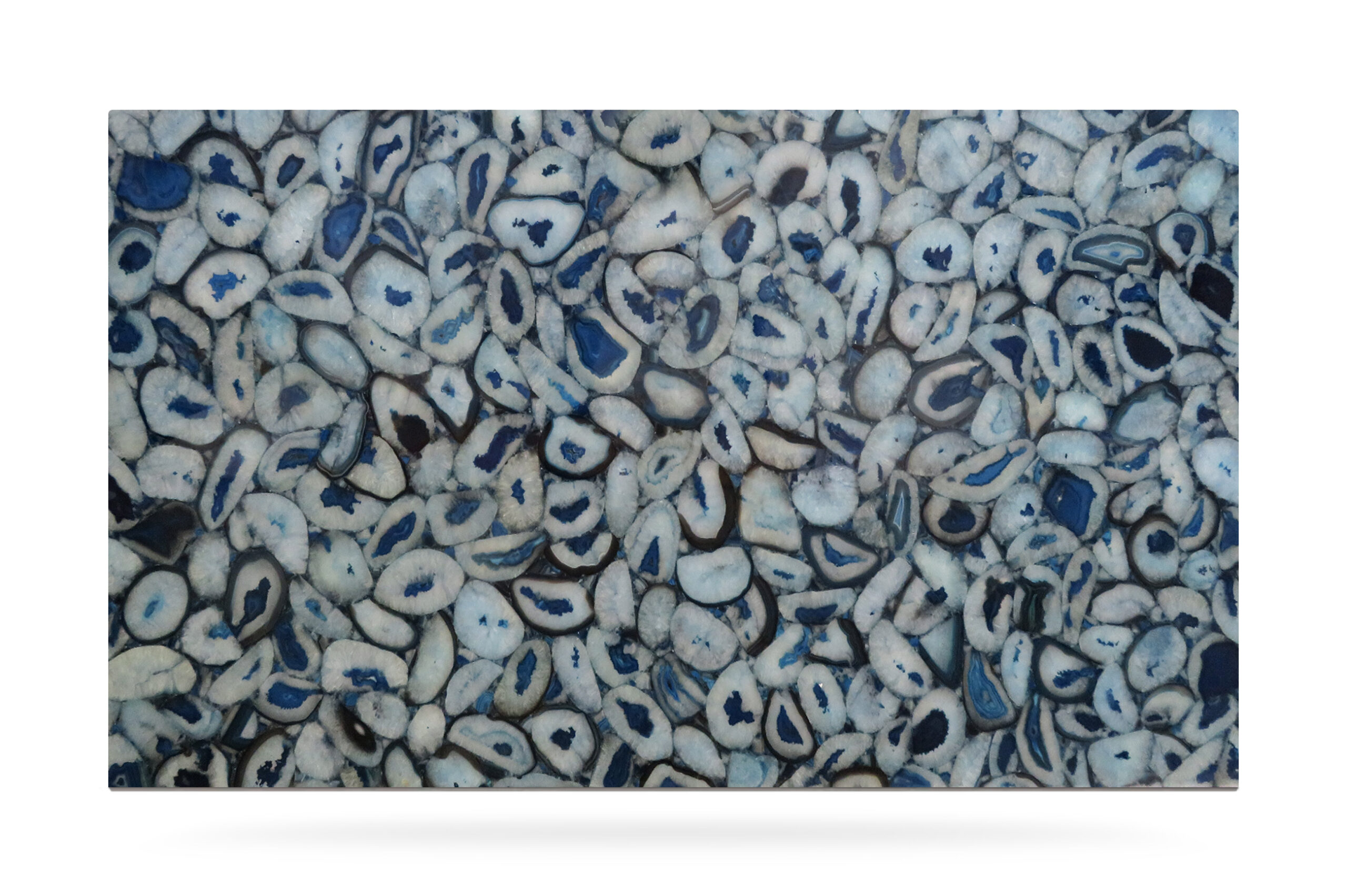 Bellissima pietra semipreziosa di colore blu intenso, bianco e marrone, trasparente e brillante. Lavorato e agglomerato con la resina per creare le lastre. Molto elegante e raffinato, utilizzato per ornamenti e gioielli, particolarmente utilizzato per la realizzazione di progetti per interni e decorazioni di alto livello.