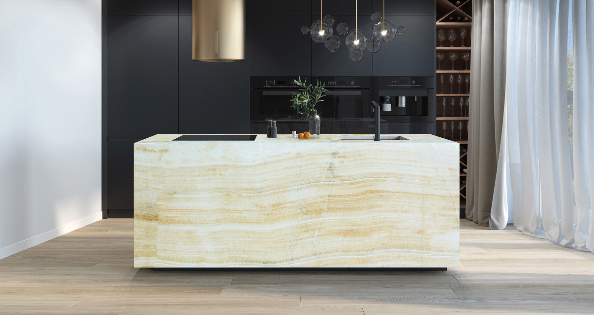 Onice proveniente dalle cave dell’antica Persia. Caratterizzato da striature che vanno dal marrone al beige, struttura omogenea, facilmente retro-illuminabile, perfetto per gli ambienti più raffinati. Utilizzato principalmente per pavimenti e rivestimenti soprattutto interni, scale, tavoli, lavelli, piani cucina, frontali banchi vendita.