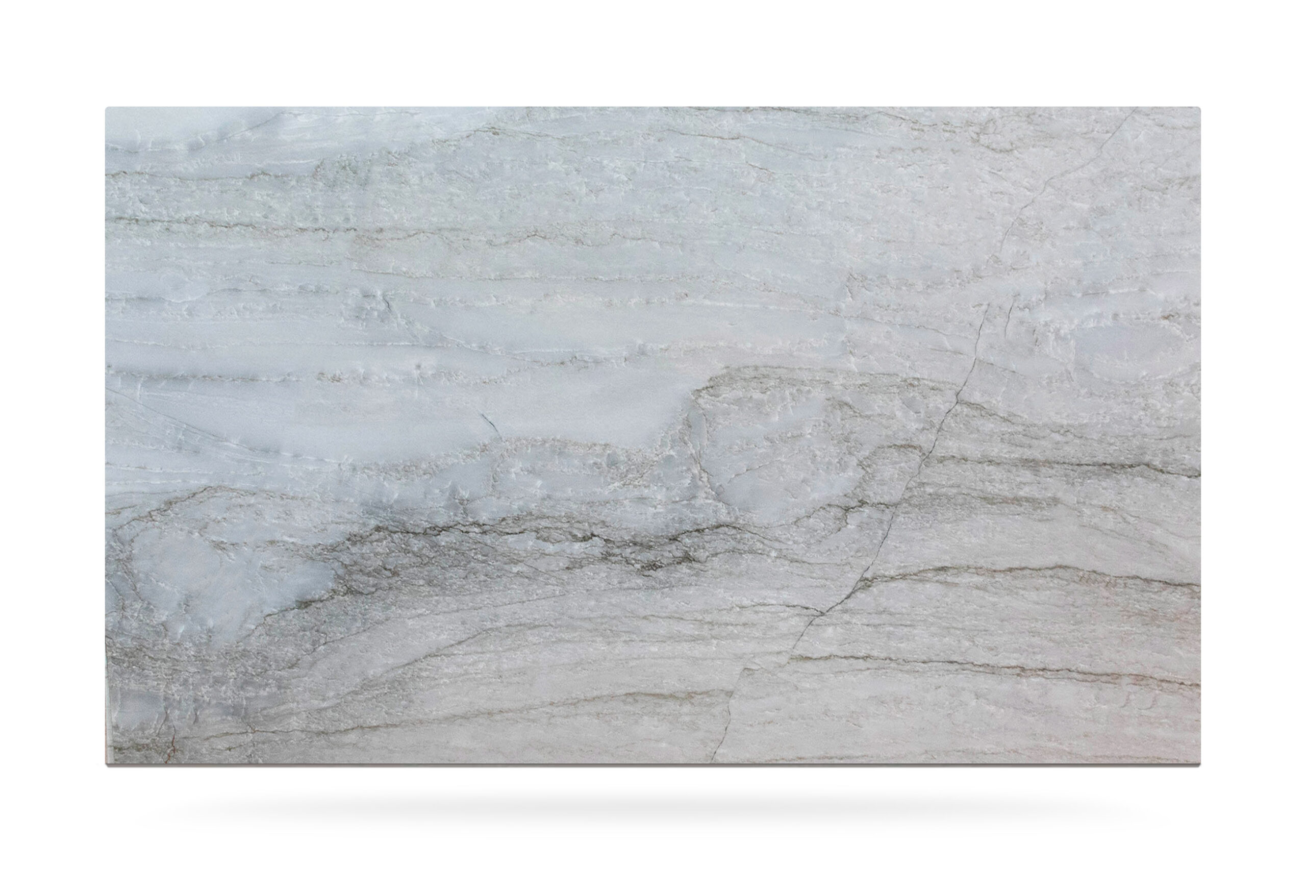 Bellissimo cristallo bianco translucido con vene di quarzo nere.  Si presta perfettamente a qualsiasi tipo di soluzione d'arredo.