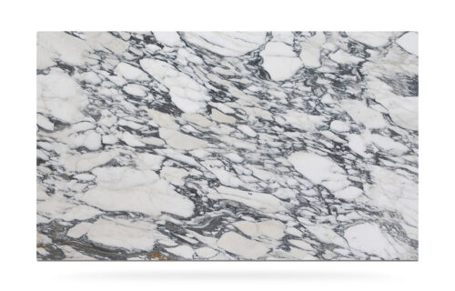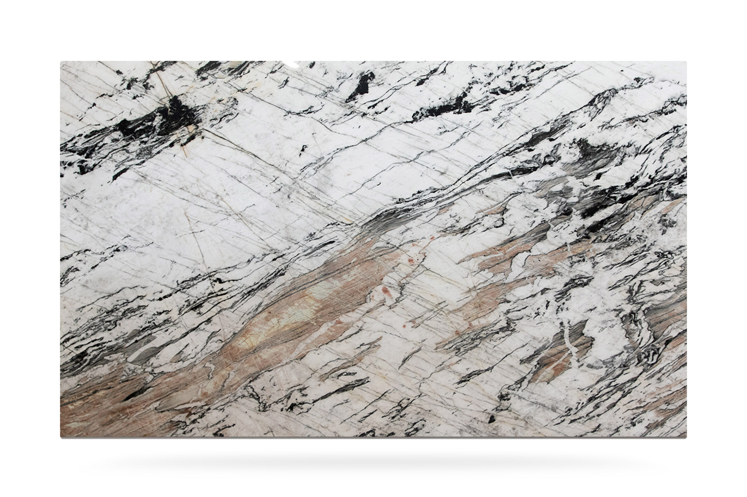 Bellissimo cristallo bianco translucido con vene di quarzo nere. Si presta perfettamente a qualsiasi tipo di soluzione d'arredo.