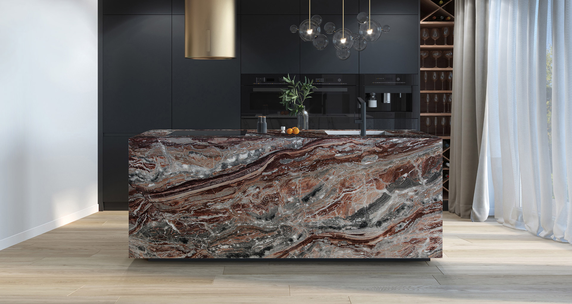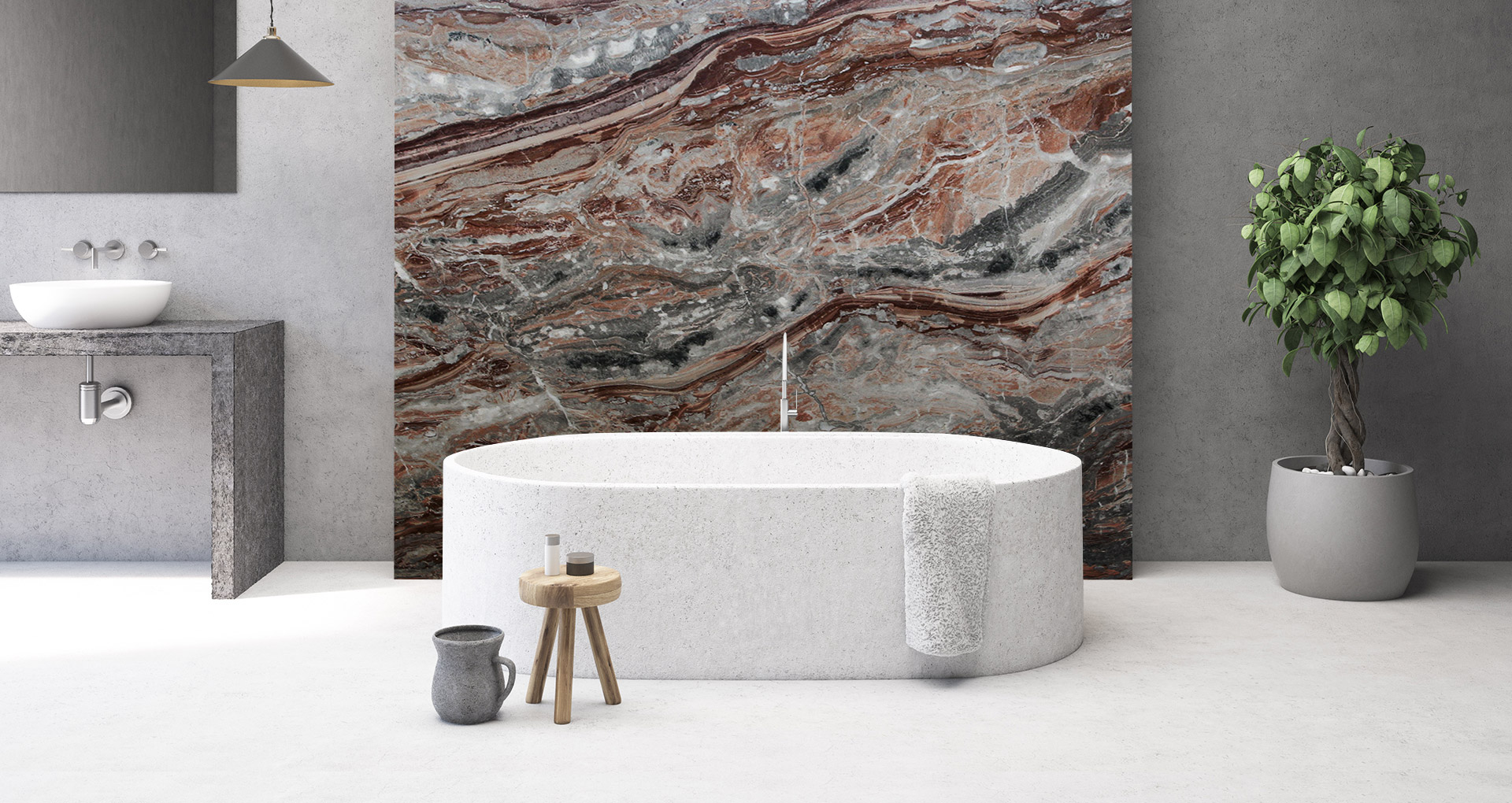 Storico marmo venato di colore rosso, proveniente dalla cava situata in val Brembana di nostra proprietà da generazioni. La colorazione di questo particolarissimo marmo può variare dal rosso, bianco al grigio chiaro. La particolare venatura insieme alla colorazione di questo marmo permettono delle costruzioni di macchia aperta che creano splendide coreografie. L'arabescato orobico rosso è un marmo che per la sua brillantezza e lucidità ben si presta all'impiego nell'arredamento d'interni (pavimenti, rivestimenti, pareti, top bagno, top cucina, scale) ed è impiegato con successo anche negli ambienti esterni. L'arabescato orobico si può presentare, grezzo, sabbiato, sabbiato spazzolato, solo spazzolato (detto anche anticato), spazzolato rigato e lucidato.