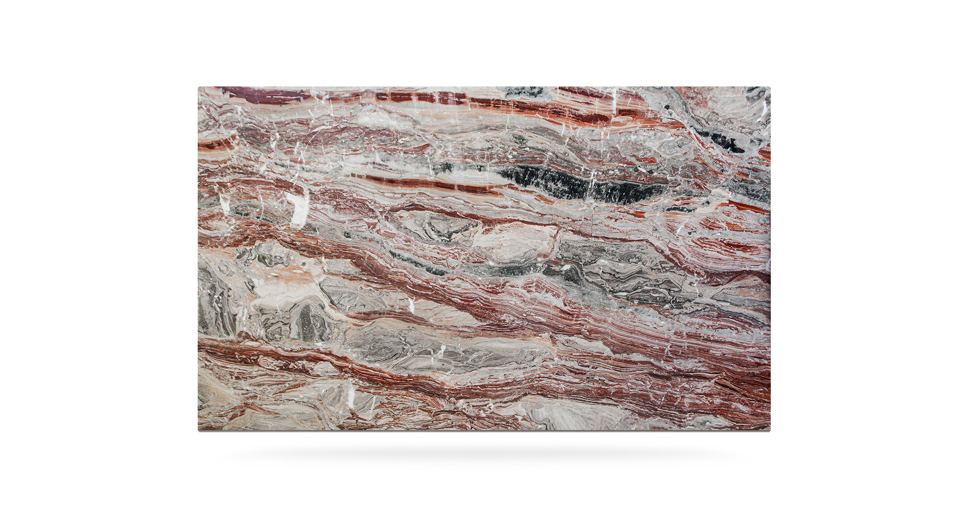 Storico marmo venato di colore rosso, proveniente dalla cava situata in val Brembana di nostra proprietà da generazioni. La colorazione di questo particolarissimo marmo può variare dal rosso, bianco al grigio chiaro. La particolare venatura insieme alla colorazione di questo marmo permettono delle costruzioni di macchia aperta che creano splendide coreografie. L'arabescato orobico rosso è un marmo che per la sua brillantezza e lucidità ben si presta all'impiego nell'arredamento d'interni (pavimenti, rivestimenti, pareti, top bagno, top cucina, scale) ed è impiegato con successo anche negli ambienti esterni. L'arabescato orobico si può presentare, grezzo, sabbiato, sabbiato spazzolato, solo spazzolato (detto anche anticato), spazzolato rigato e lucidato.