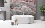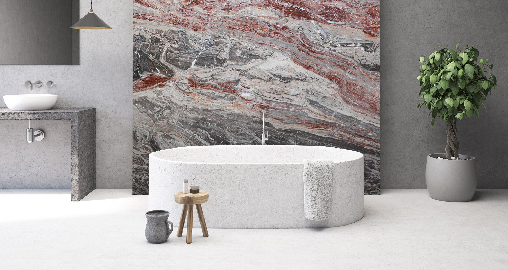 Storico marmo venato di colore rosso, proveniente dalla cava situata in val Brembana di nostra proprietà da generazioni. La colorazione di questo particolarissimo marmo può variare dal rosso, bianco al grigio chiaro. La particolare venatura insieme alla colorazione di questo marmo permettono delle costruzioni di macchia aperta che creano splendide coreografie. L'arabescato orobico rosso è un marmo che per la sua brillantezza e lucidità ben si presta all'impiego nell'arredamento d'interni (pavimenti, rivestimenti, pareti, top bagno, top cucina, scale) ed è impiegato con successo anche negli ambienti esterni. L'arabescato orobico si può presentare, grezzo, sabbiato, sabbiato spazzolato, solo spazzolato (detto anche anticato), spazzolato rigato e lucidato.
