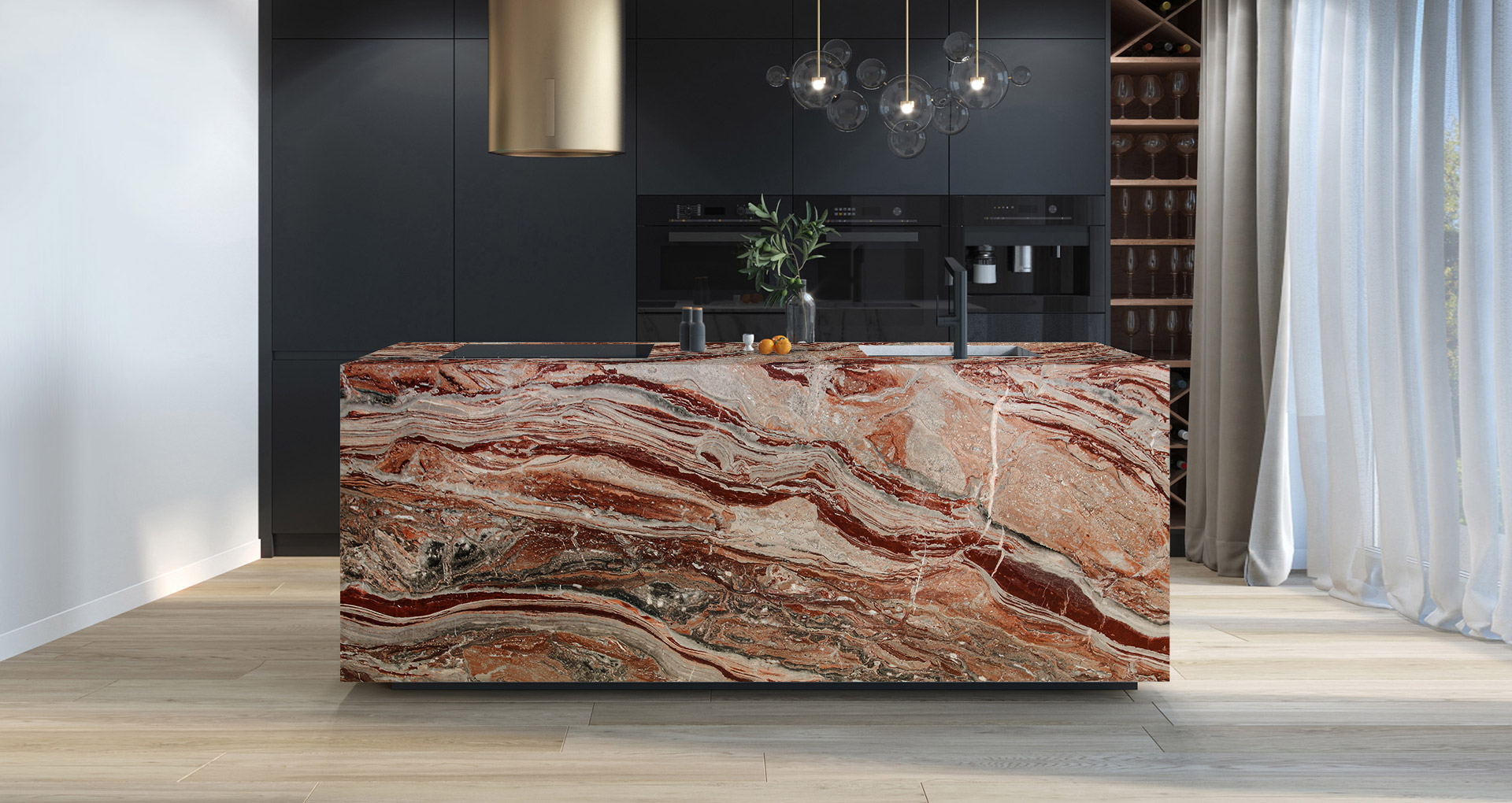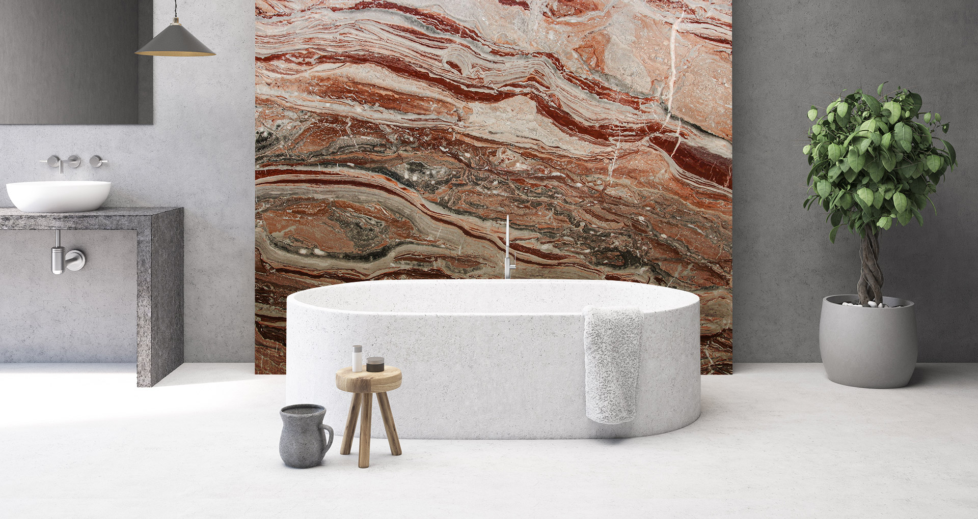 Storico marmo venato di colore rosso, proveniente dalla cava situata in val Brembana di nostra proprietà da generazioni. La colorazione di questo particolarissimo marmo può variare dal rosso, bianco al grigio chiaro. La particolare venatura insieme alla colorazione di questo marmo permettono delle costruzioni di macchia aperta che creano splendide coreografie. L'arabescato orobico rosso è un marmo che per la sua brillantezza e lucidità ben si presta all'impiego nell'arredamento d'interni (pavimenti, rivestimenti, pareti, top bagno, top cucina, scale) ed è impiegato con successo anche negli ambienti esterni. L'arabescato orobico si può presentare, grezzo, sabbiato, sabbiato spazzolato, solo spazzolato (detto anche anticato), spazzolato rigato e lucidato.