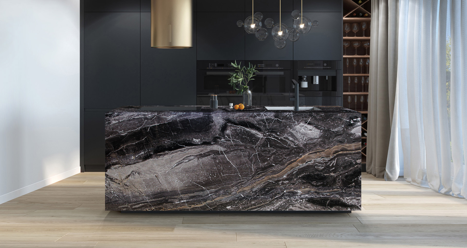 Marmo dai toni scuri proveniente da cave situate nell'Italia settentrionale, precisamente in val Brembana. La colorazione di questo particolarissimo materiale può variare dalle diverse tonalità di grigio, al nero e marrone/oro. I movimenti di queste colorazioni permettono delle costruzioni di macchia aperta che compongono splendide coreografie. L'arabescato orobico è un marmo che per la sua brillantezza e lucidità ben si presta all'impiego nell'arredamento d'interni (pavimenti, rivestimenti, pareti, top bagno, top cucina, scale), ma allo stesso tempo è utile anche per l'arredo di esterni. Questo materiale si può presentare grezzo, sabbiato, sabbiato spazzolato, solo spazzolato (detto anche anticato), spazzolato rigato e lucidato.