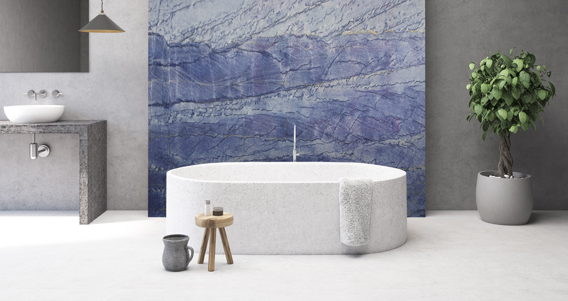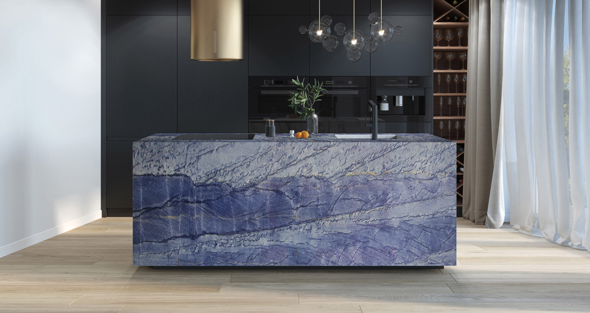 Quarzite ricca di venature blu e dai colori pastello su un fondo azzurro. Originaria del Brasile, è ideale per decorare con prestigio ambienti interni ed esterni. L'Azul Macaubas è molto resistente e non si deteriora nel tempo; particolarmente adatto per piani cucina, pavimenti e rivestimenti.