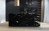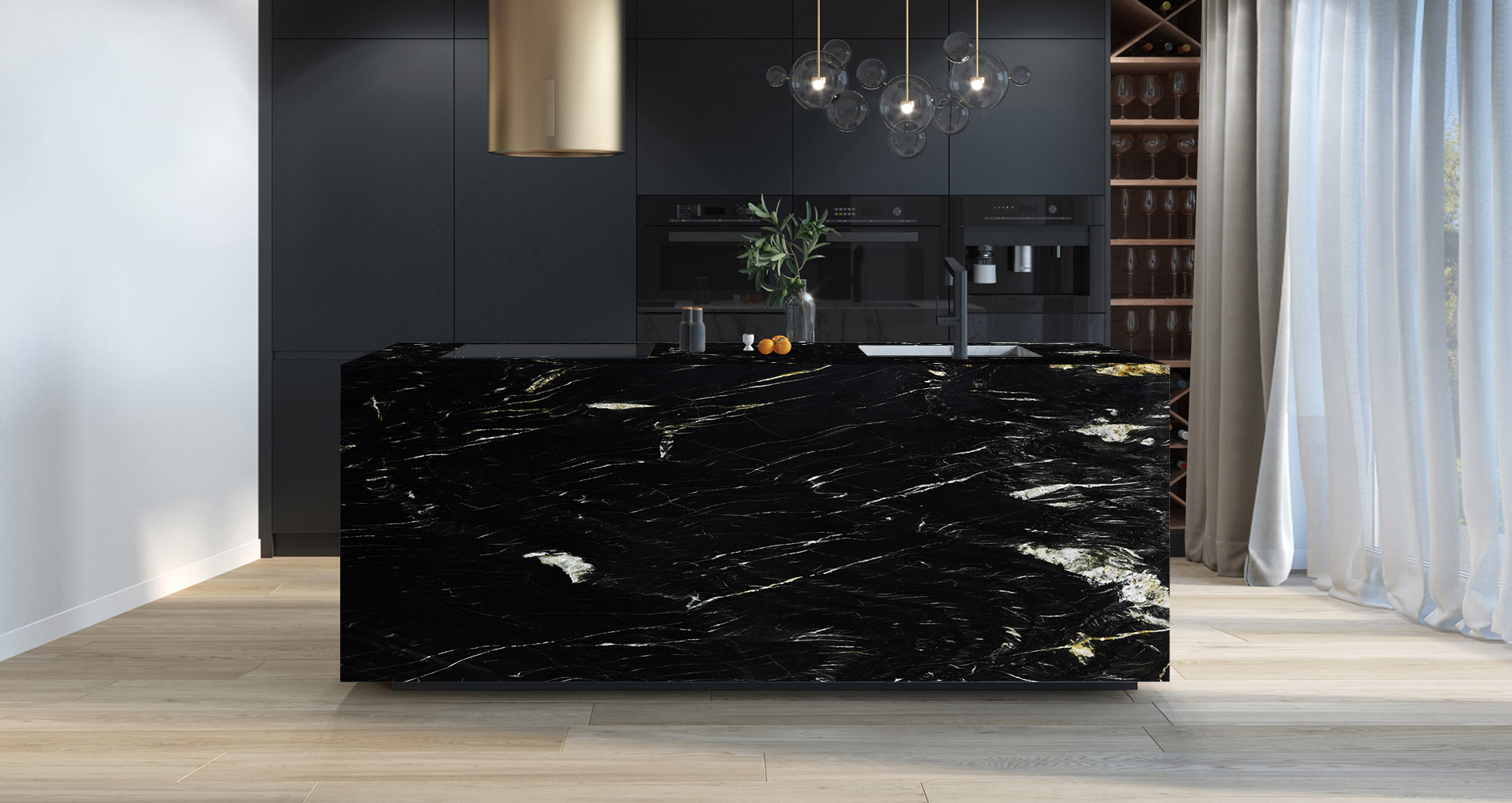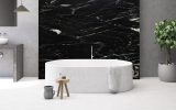 Quarzite a grana fine dallo sfondo nero profondo, attraversato da venature bianche ed oro che creano un contrasto naturale dal forte impatto. Proveniente dal sud Africa, questa quarzite nera è considerata uno tra i materiali più duri e resistenti, con un basso grado di assorbimento dei liquidi e grassi. Belvedere è un materiale ideale per la realizzazione di pavimenti, piani cucina e rivestimenti a parete.