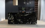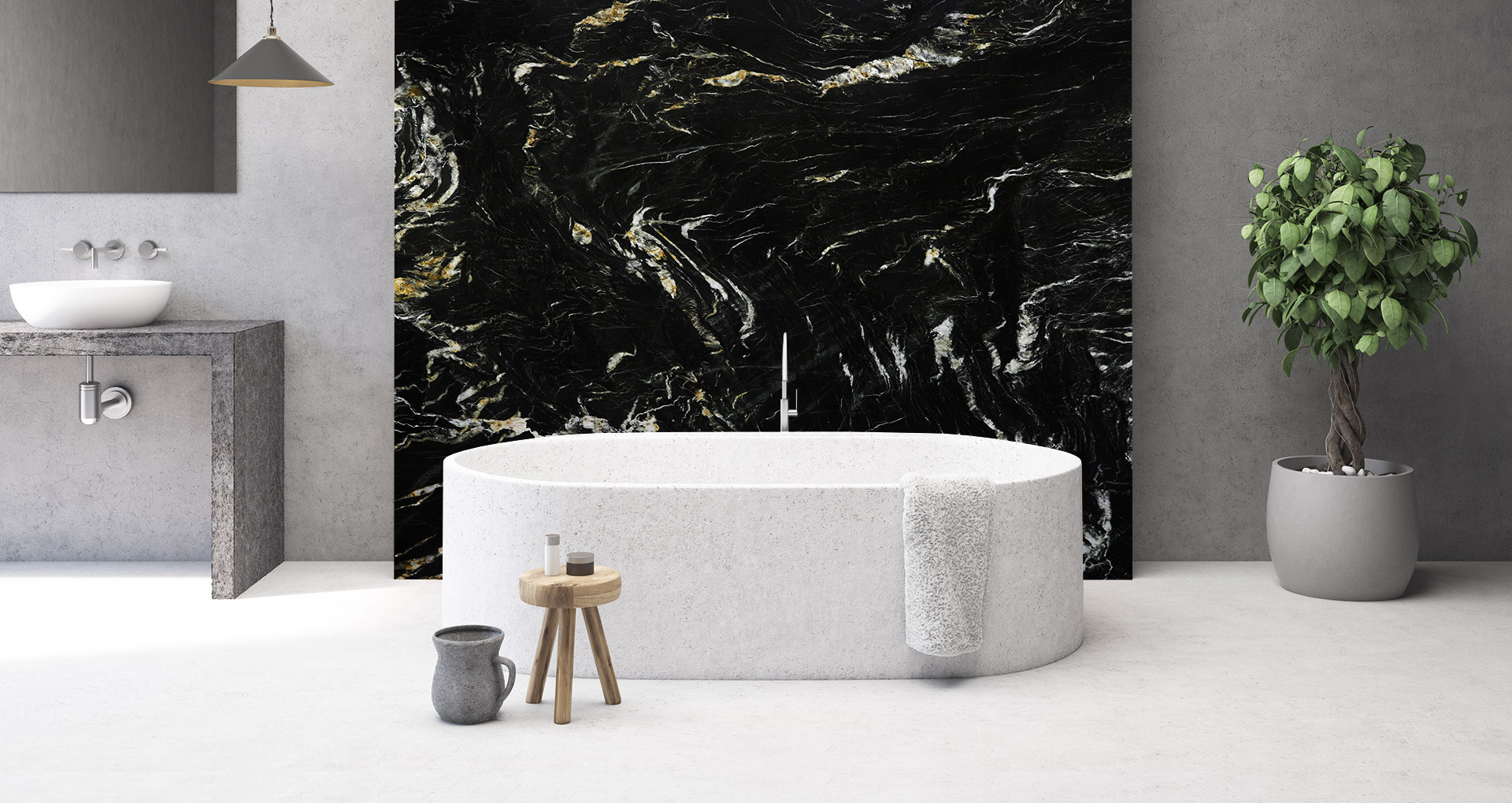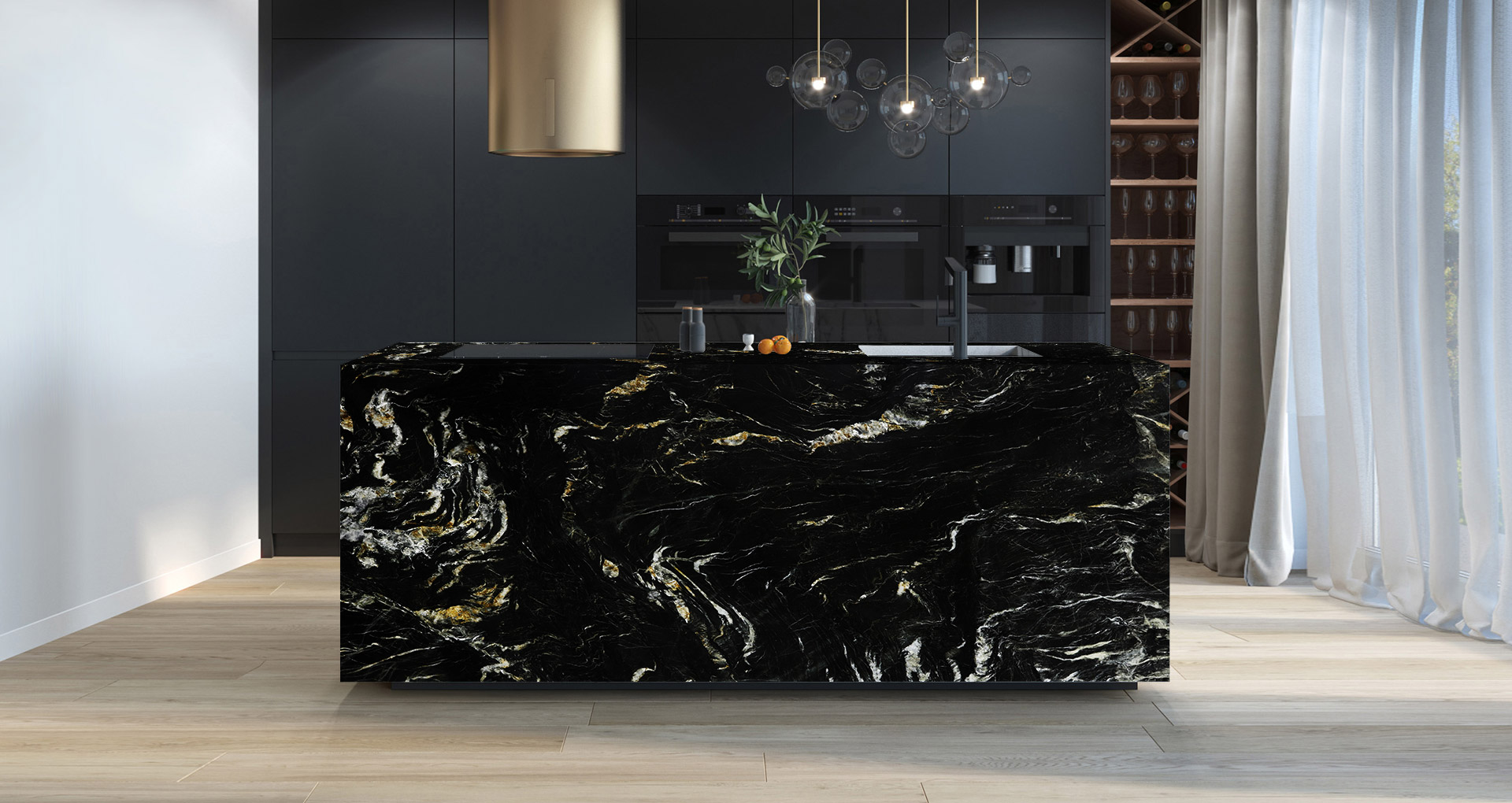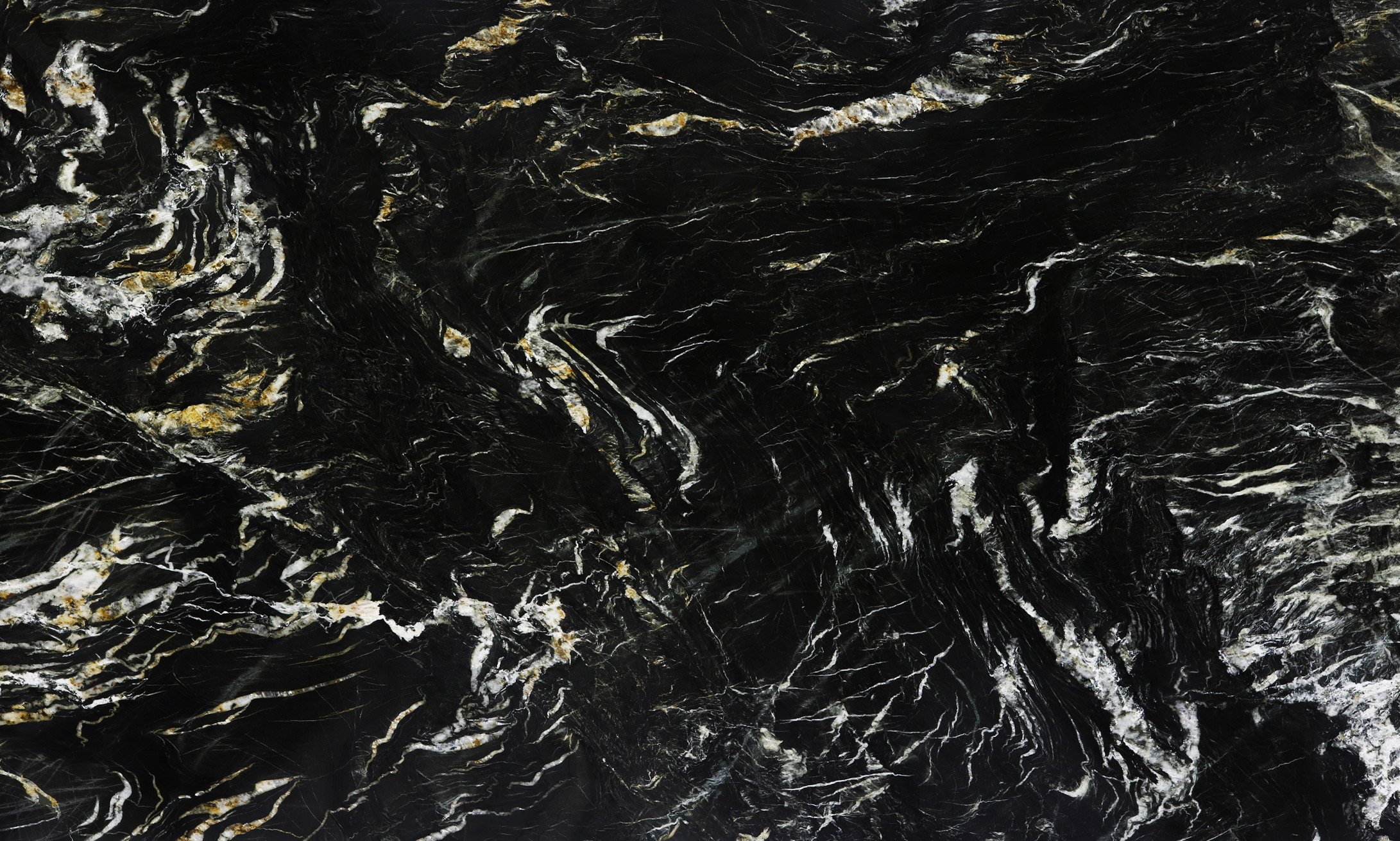 Quarzite a grana fine dallo sfondo nero profondo, attraversato da venature bianche ed oro che creano un contrasto naturale dal forte impatto. Proveniente dal sud Africa, questa quarzite nera è considerata uno tra i materiali più duri e resistenti, con un basso grado di assorbimento dei liquidi e grassi. Belvedere è un materiale ideale per la realizzazione di pavimenti, piani cucina e rivestimenti a parete.
