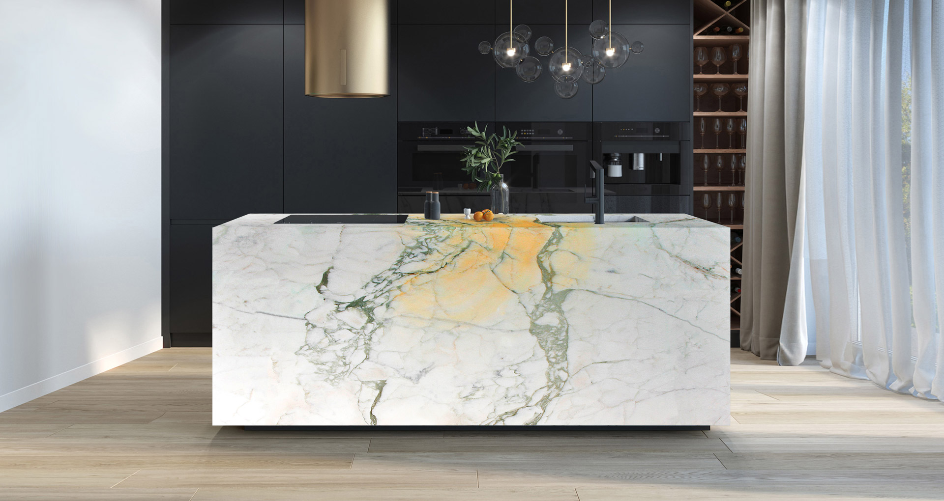 Raffinato marmo proveniente dalle Alpi Apuane, bacino marmifero tra i più importanti al mondo. Di colore bianco perlato e con lievi venature che si estendono dal grigio al verde, il Caldia risulta essere un materiale conosciuto per la luminosità e l'eleganza che riescono a donare all'ambiente circostante. La durezza e la resistenza al calpestio fanno di questo materiale un'ottima scelta per la costruzione di ambienti sia interni che esterni.