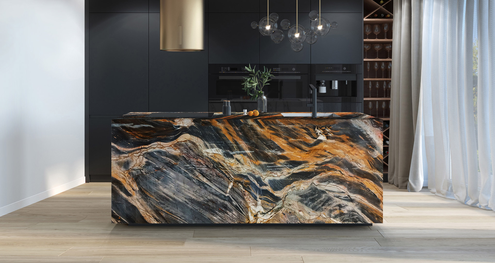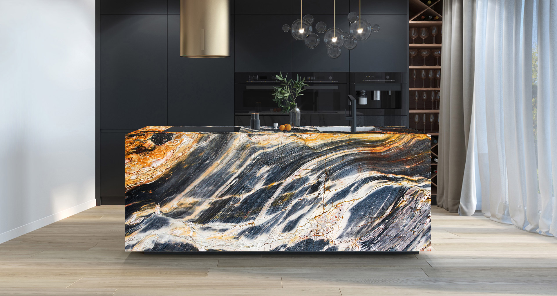 Materiale esotico brasiliano molto apprezzato in tutto il mondo che consente di realizzare architetture e progetti di qualsiasi tipo, sia da interno che da esterno, grazie ai colori intensi ed armonici tipici di questa quarzite.