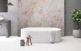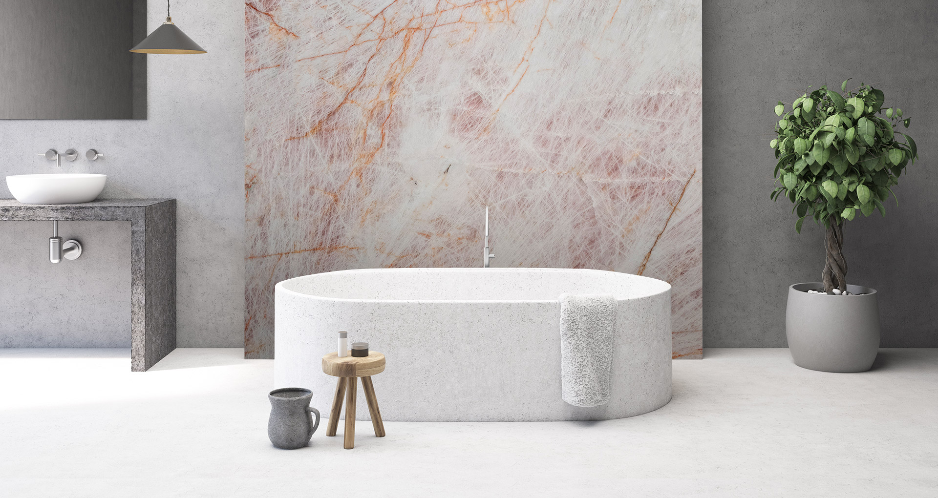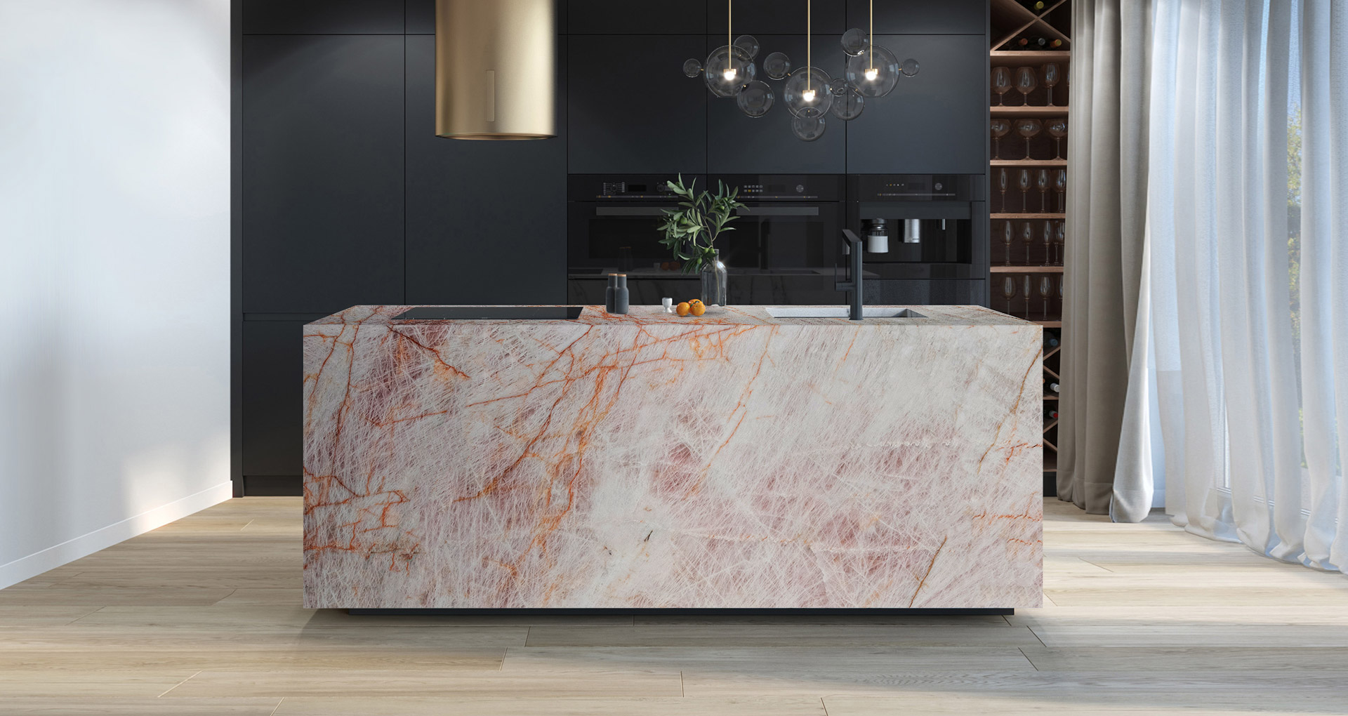 Elegante quarzite dal colore rosa arricchita da venature avorio e lilla. Importata dal Brasile, si distingue per la sua struttura nuvolata e trasparente che si presta ad essere retroilluminata. Cristallo Rosa è una pietra naturalmente resistente agli acidi ed agli sbalzi termici, per questo utilizzabile anche per piani cucina oltre che per rivestimenti a parete e pavimenti a macchia aperta.