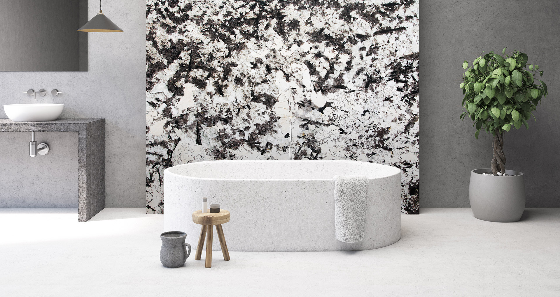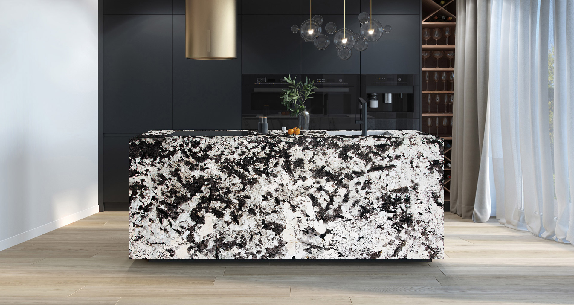 Granito proveniente dal Brasile particolarmente apprezzato per la sua struttura irregolare formata da uno sfondo bianco contrastato da numerose venature scure. Essendo un materiale complessivamente chiaro, è in grado di donare lucentezza all'ambiente circostante, e grazie alla resistenza agli acidi risulta adatto per realizzazioni di ripiani da cucina oltre che ai soliti impieghi di interior design.