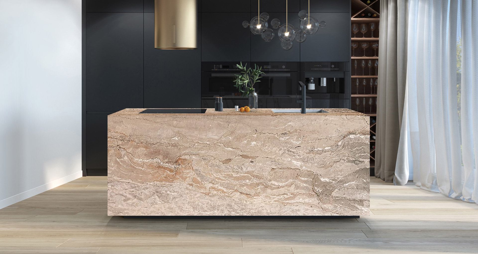 Dolomite australiana dalla tonalità beige-dorata, con sottili venature marroni e sfumature bianche. I suoi colori tenui ed armoniosi sono ideali per arredare con ricercata eleganza ambienti interni ampi e luminosi. Questa roccia metamorfica gode di un elevato grado di durezza, oltre che essere resistente agli acidi ed ai graffi per via della sua composizione dolomitica. Ottima per rivestimenti a parete, piani cucina e pavimenti, viene consigliata in finitura lucida, levigata o spazzolata.