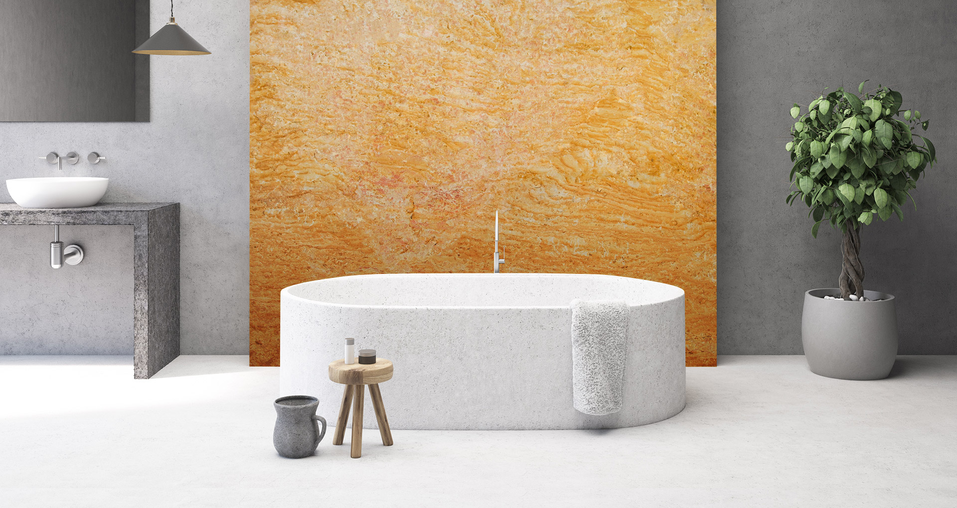 Giallo Reale è un marmo italiano dalla grana fine formatosi attraverso un processo metamorfico tra rocce sedimentarie. Di colore ocra, presenta venature irregolari e sfumature bianche e rosse che garantiscono unicità a qualunque tipo di realizzazione. Consigliato in finitura lucida o spazzolata, questo materiale arricchisce l'ambiente circostante di un'atmosfera antica e affascinante. Pavimenti, rivestimenti a parete e piani cucina sono alcune tra le possibili realizzazioni che fanno di Giallo Reale un materiale di prima scelta e ricercato da professionisti del settore.