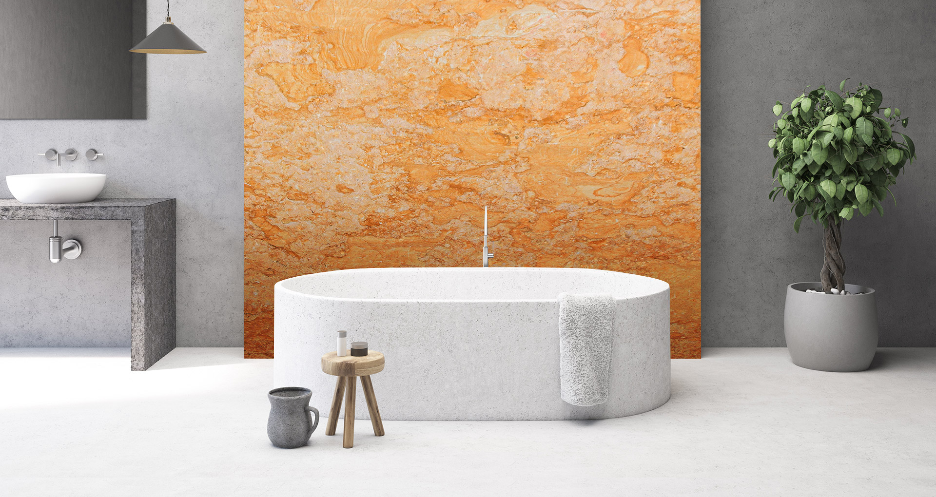 Giallo Reale è un marmo italiano dalla grana fine formatosi attraverso un processo metamorfico tra rocce sedimentarie. Di colore ocra, presenta venature irregolari e sfumature bianche e rosse che garantiscono unicità a qualunque tipo di realizzazione. Consigliato in finitura lucida o spazzolata, questo materiale arricchisce l'ambiente circostante di un'atmosfera antica e affascinante. Pavimenti, rivestimenti a parete e piani cucina sono alcune tra le possibili realizzazioni che fanno di Giallo Reale un materiale di prima scelta e ricercato da professionisti del settore.