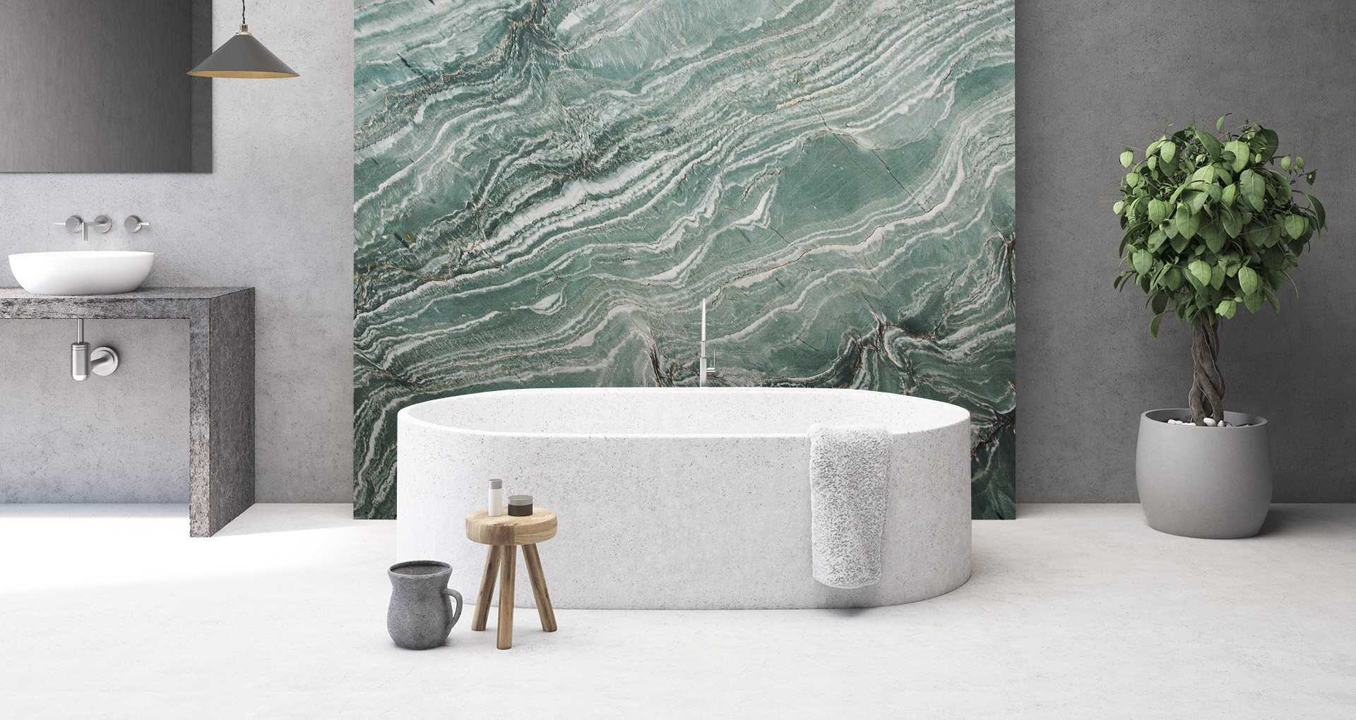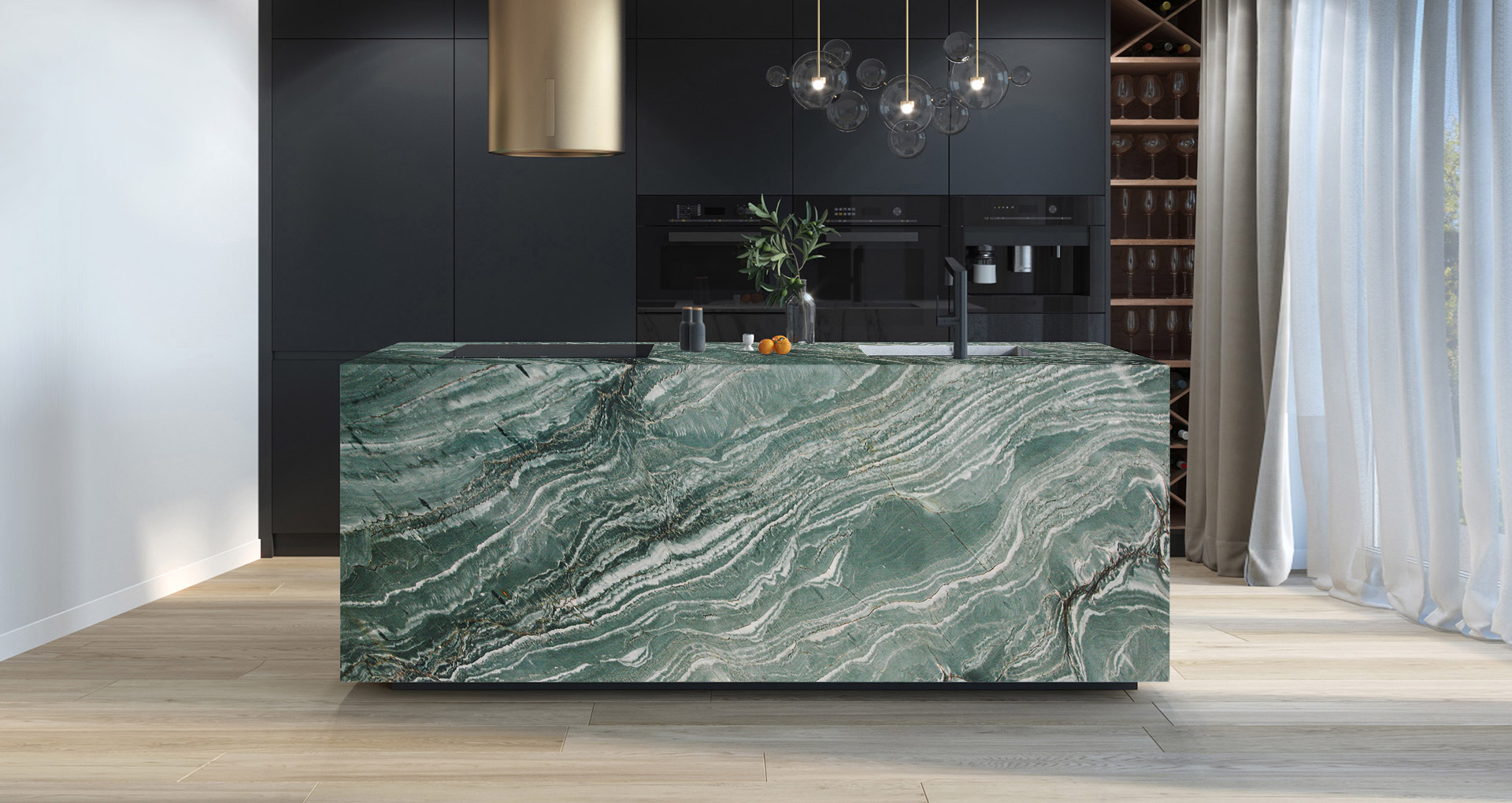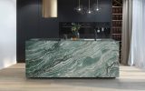 Laguna Bay è una quarzite di straordinaria personalità estetica, caratterizzata da un intenso fondo verde smeraldino attraversato da sinuose venature bianche che disegnano profonde sfumature verde scuro. Particolarità protagonista di questa pietra naturale è il dinamismo naturale delle sue trame, che richiama il movimento fluido delle onde. Le sue eccellenti proprietà fisiche ne facilitano la lavorazione e ne garantiscono performance elevate nel tempo: Laguna Bay si presta alla realizzazione di piani cucina e bagno, pavimentazioni, scale e rivestimenti, valorizzando ambienti residenziali e contract con un’eleganza distintiva e contemporanea.