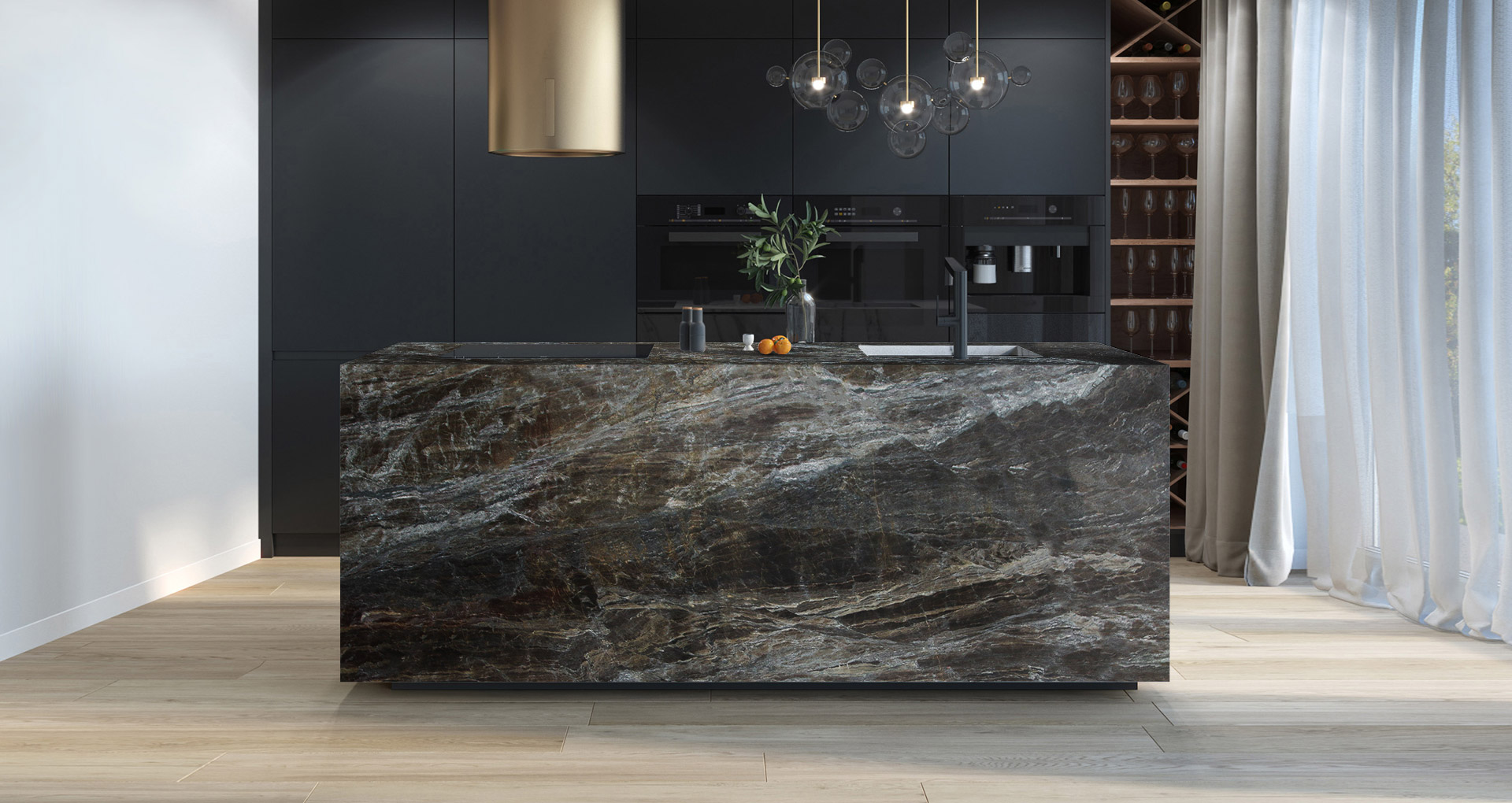 Raffinata quarzite proveniente dal Brasile composta da fondo nero e venature irregolari blu. Madeira è una pietra naturalmente resistente agli acidi e agli sbalzi termici, utilizzata principalmente per realizzazioni di design interno come pavimenti, rivestimenti a parete e scale. I suoi toni scuri e misteriosi vengono spesso abbinati a materiali più chiari in grado di creare un gioco di contrasti.