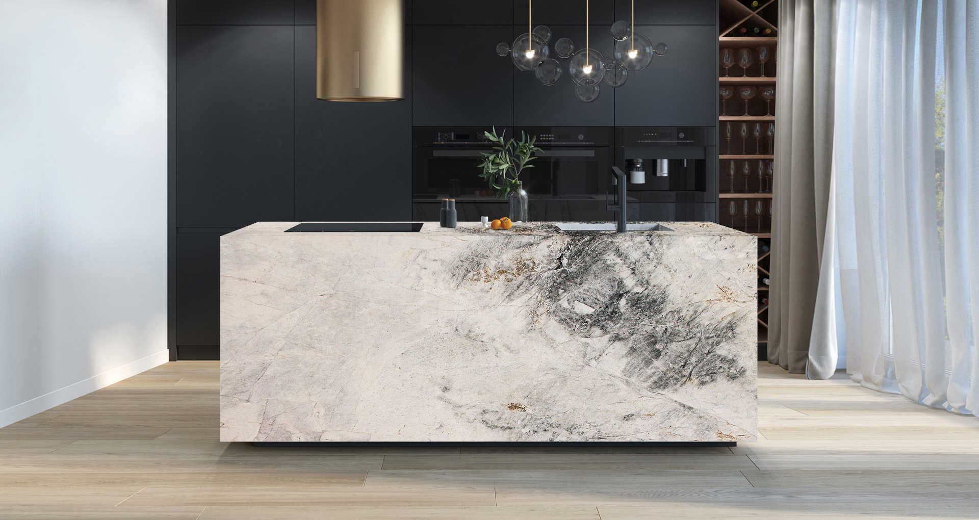 Elegante dolomite brasiliana caratterizzata da uno sfondo chiaro color crema, con ampie sfumature grigie. Ideale per qualsiasi tipo di utilizzo sia per ambienti interni che esterni.
