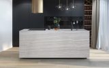 Quarzite brasiliana di colore crema attraversata da lineari venature grigie. Il suo colore naturale la rende adatta a qualunque tipo di utilizzo.
