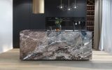 Marmo estratto in Italia dal fondo marrone. Lievi venature bianche attraversano la lastra in modo irregolare. Le varie sfumature di marrone si alternano contribuendo, insieme alle venature, all'unicità di ciascuna realizzazione. La durezza di New Flage e la sua resistenza agli sbalzi termici fanno di questo materiale un'ottima scelta per realizzazioni interne come pavimenti o rivestimenti a parete.