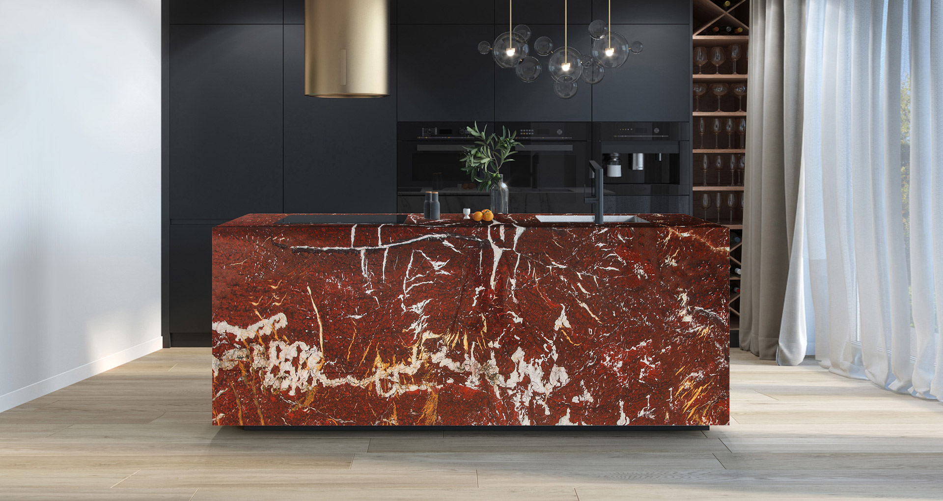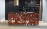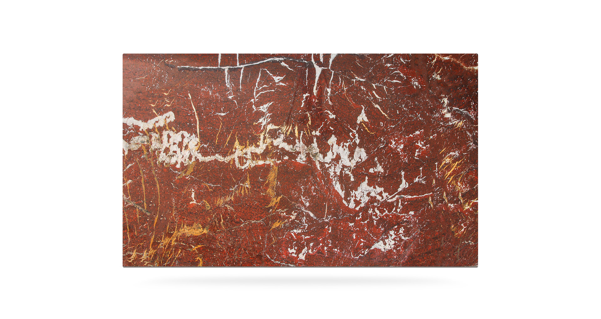 Marmo proveniente dalla Francia di uno spiccato colore rosso intenso, su cui si intrecciano venature irregolari gialle e bianche. Utilizzato principalmente in finitura lucida o levigata, Rouge de Roi è un materiale particolarmente resistente ad urti e sbalzi termici, per questo utilizzato per realizzazioni di design interno ed esterno.