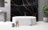 Saint Laurent è una pietra naturale appartenente alla categoria dei marmi, caratterizzata da una cromia scura e profonda. Si presenta in lastre prevalentemente nere o marrone scuro, attraversate da venature irregolari di colore bianco e oro, distribuite in modo non uniforme. Dal punto di vista tecnico, il marmo Saint Laurent si distingue per una buona compattezza strutturale e un’elevata resistenza meccanica, caratteristiche che ne consentono l’impiego in molteplici applicazioni. Grazie alle sue proprietà fisiche ed estetiche, il Saint Laurent è particolarmente indicato per pavimentazioni, rivestimenti, scale, piani di lavoro, elementi di arredo e superfici decorative di pregio, garantendo durabilità, stabilità nel tempo e un elevato valore estetico.