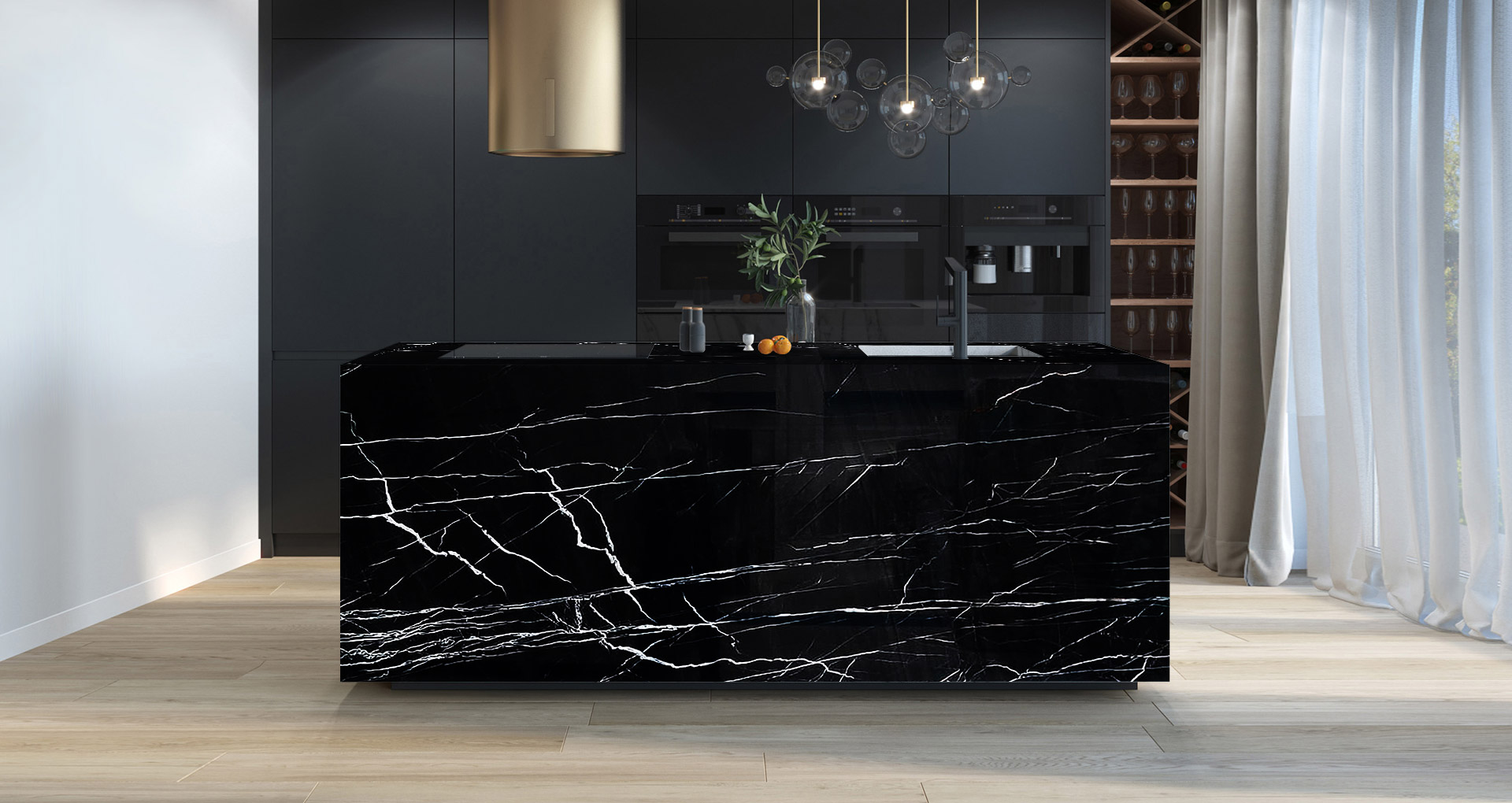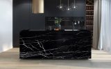 Quarzite brasiliana di colore nero con lievi venature bianche che attraversano le lastre in eleganti ramificazioni irregolari. Questo contrasto di colori regala al materiale infinita profondità e raffinatezza, caratteristiche apprezzate nel campo edile che sommate alla compattezza della quarzite danno vita ad una pietra naturale ideale per la realizzazione di pavimenti e rivestimenti, ma anche complementi d'arredo, piani cucina e scale.