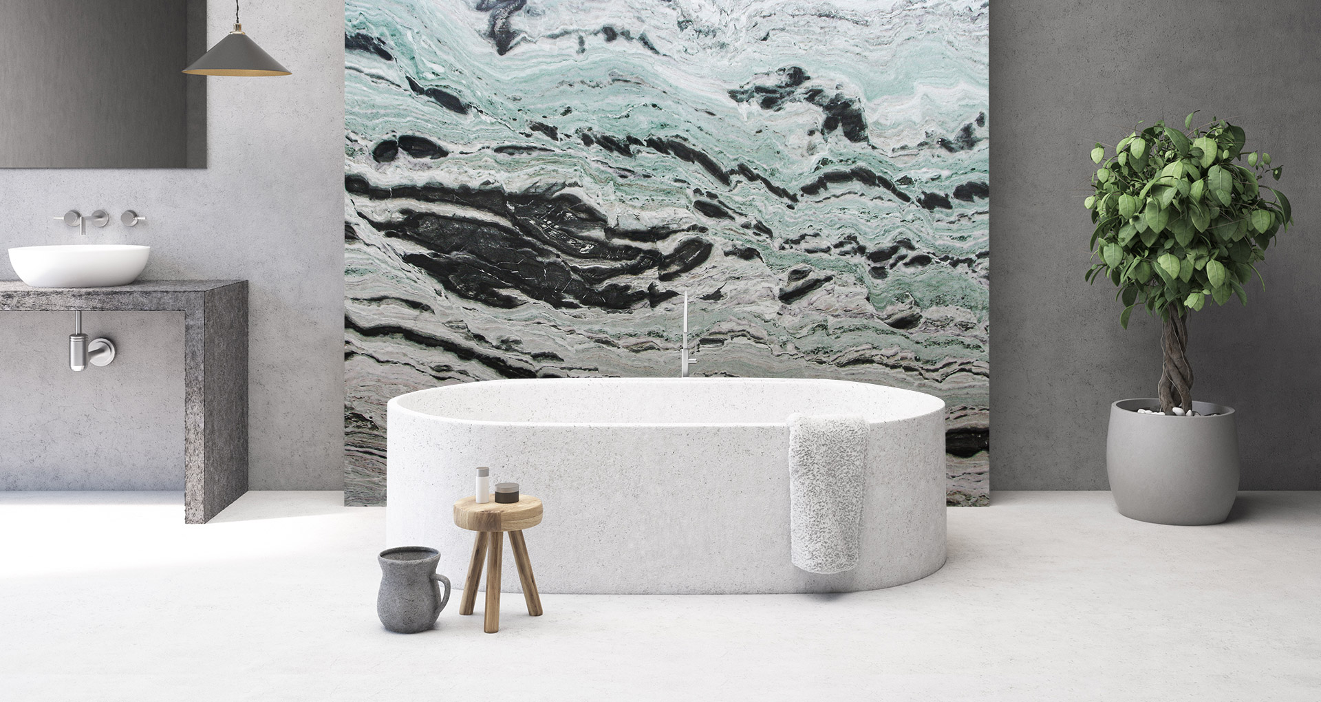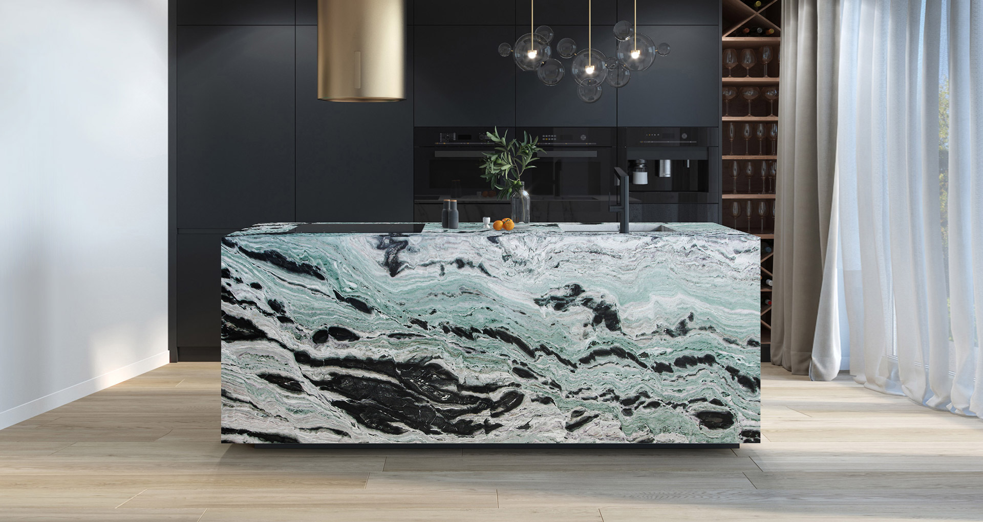 Tiffany Green è un marmo asiatico, con importanti venature verdi e bianche. Si presta ad arredare con classe ed eleganza ogni progetto di interni.