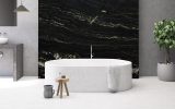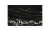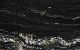 Quarzite a grana fine proveniente dal Sudafrica. Il suo sfondo nero intenso è arricchito da irregolari venature bianco-dorate che attraversano le lastre dando la possibilità ai professionisti del settore di creare stupende composizioni a macchia aperta. Questo materiale risulta essere tra le quarziti più dure e resistenti, utilizzato per la realizzazione di rivestimenti a parete, pavimenti interni ma anche progetti di design esterno e decorazioni.