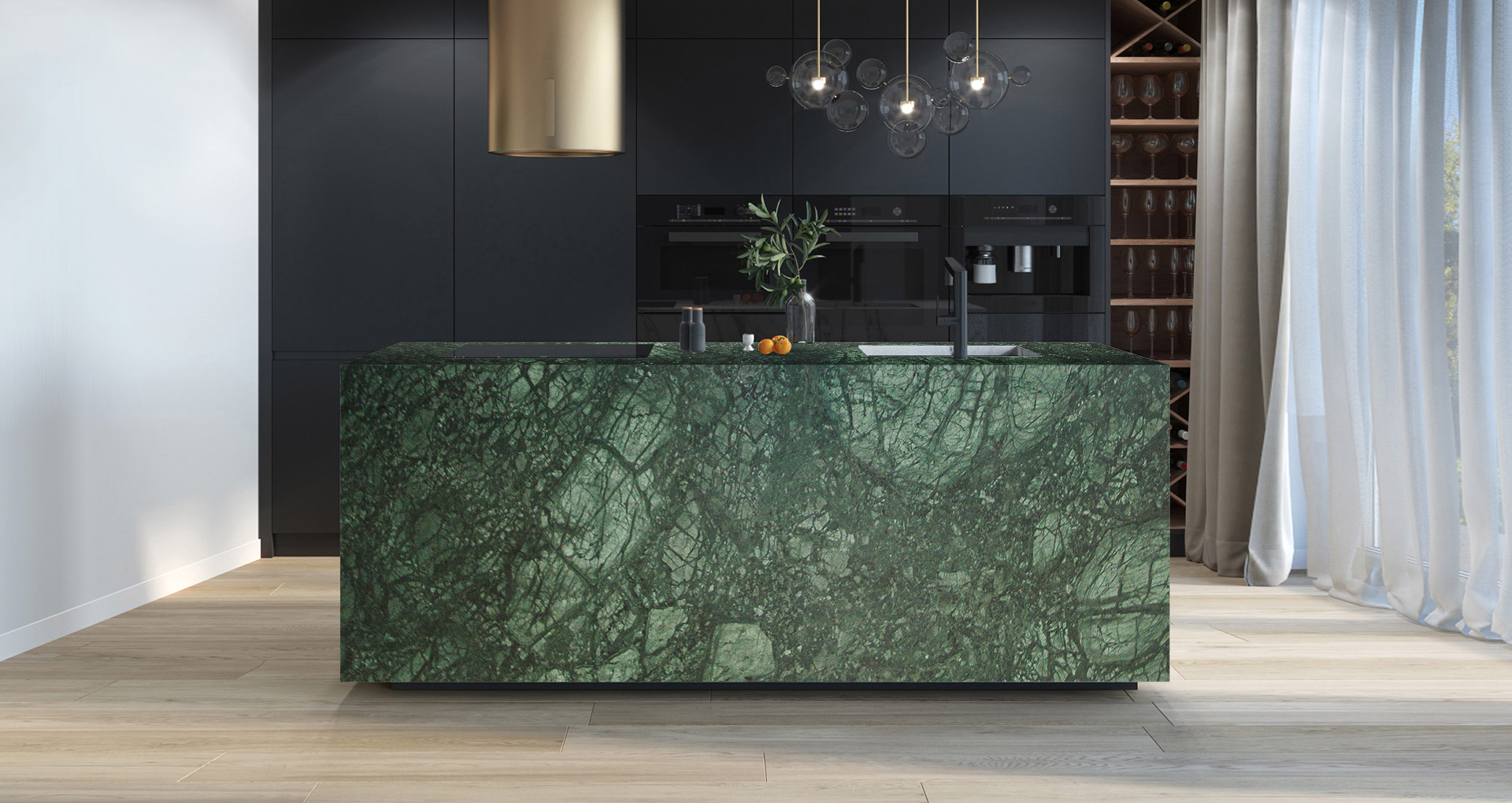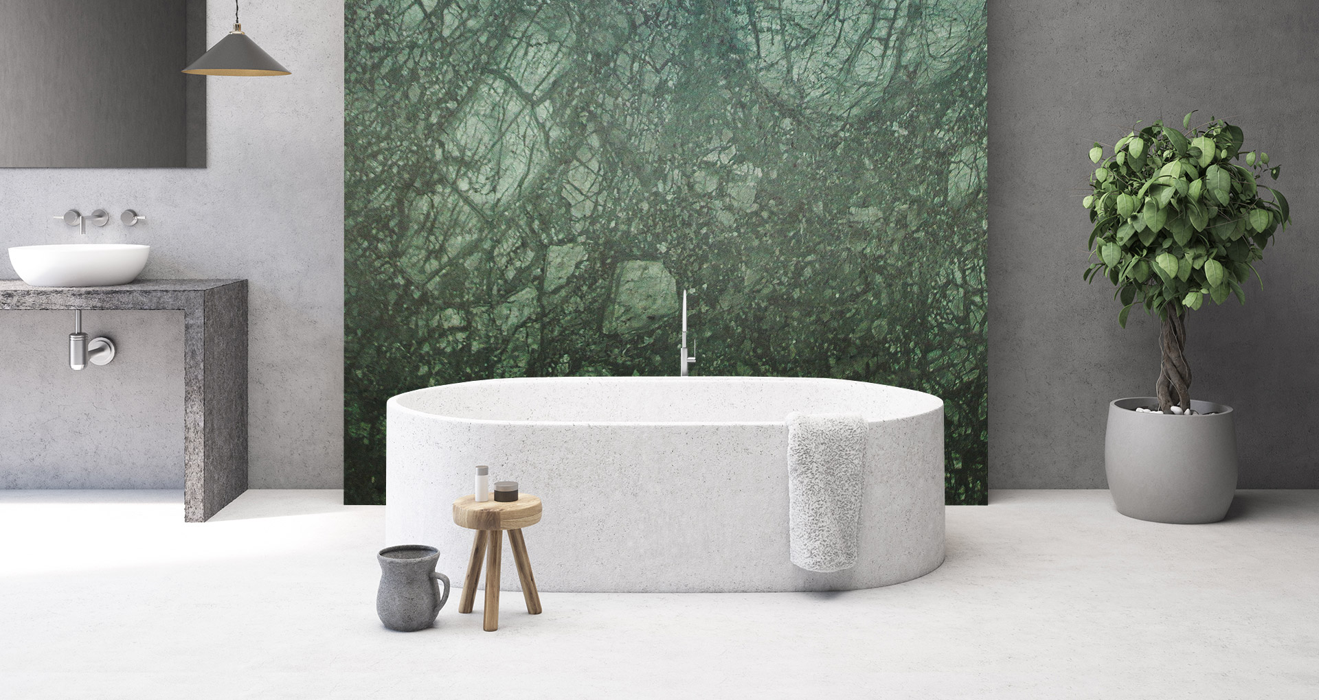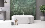 Marmo dallo sfondo verde con intrusioni bianche e venature scure. Cavato principalmente in India, soltanto una piccola parte di questo elegante materiale viene estratta in Guatemala, come invece suggerisce il nome. Utilizzato soprattutto per la decorazione di bagni, cucine e pavimenti, Verde Guatemala viene consigliato in finitura lucida o levigata, grazie alla sua capacità di riflettere la luce e di illuminarsi riflettendo le varie tonalità del suo colore originale.