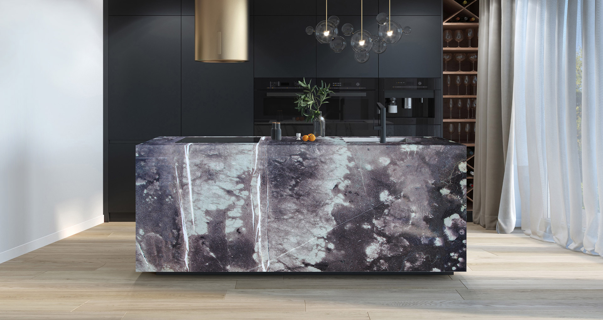 Marmo pregiato Francese dall'aspetto molto elegante. Il colore predominante è sicuramente il viola, le cui sfumature possono variare a seconda del blocco. Nuvolate sfumature di colore bianco contrastano il viola padrone di questo materiale rendendo unica qualunque realizzazione. Proprio per questo affascinante contrasto di colori, il Violet de Savoie è da sempre oggetto d'interesse per designer e professionisti, sinonimo di sofisticata eleganza e decisa personalità. Il materiale risulta essere molto compatto e duttile, adatto quindi all'utilizzo in ambienti di design interno soggetti al calpestio.