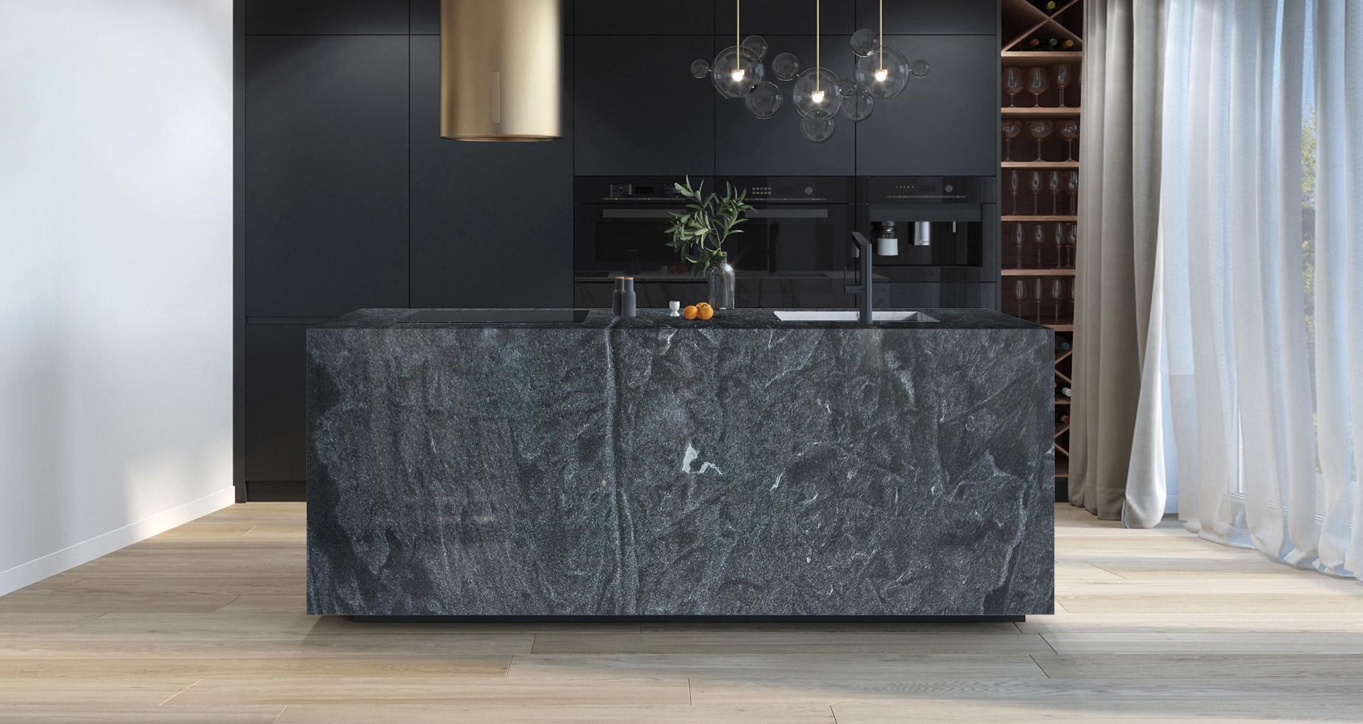 Granito proveniente dall'America di colore nero caratterizzato da rare venature bianche che conferiscono alla lastra carattere ed eleganza.