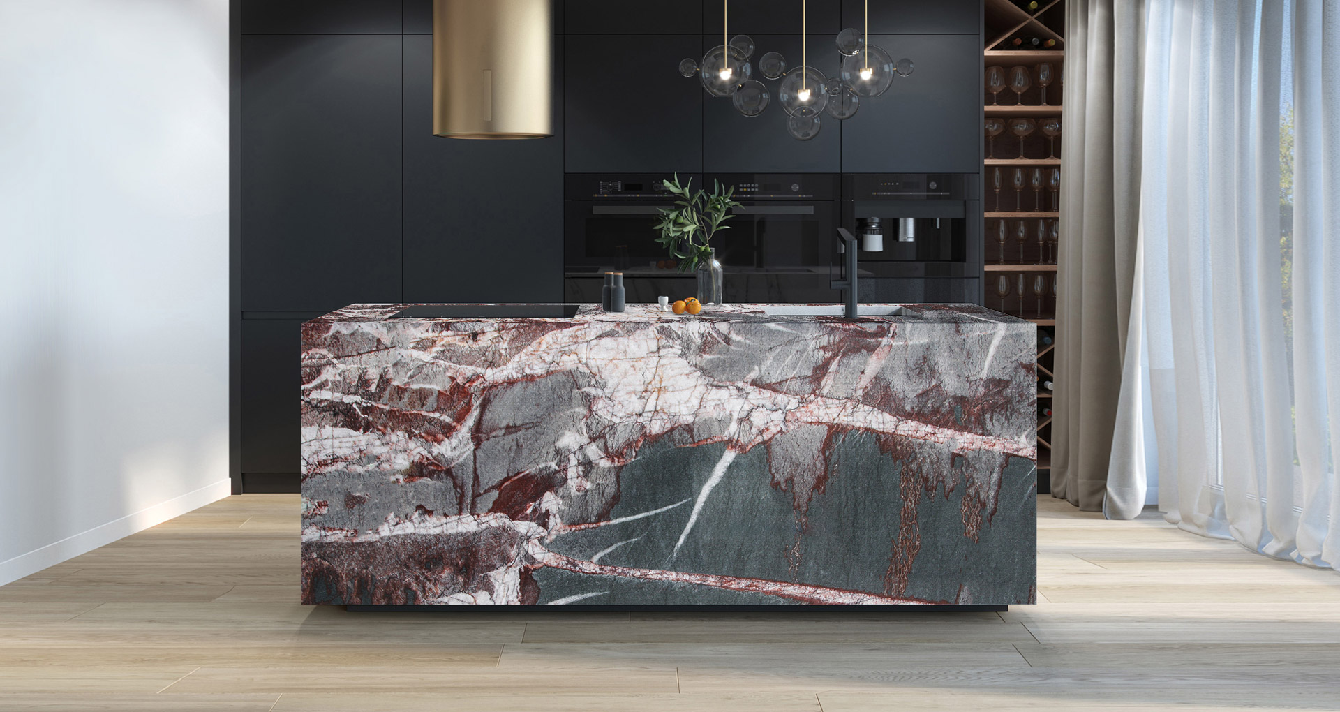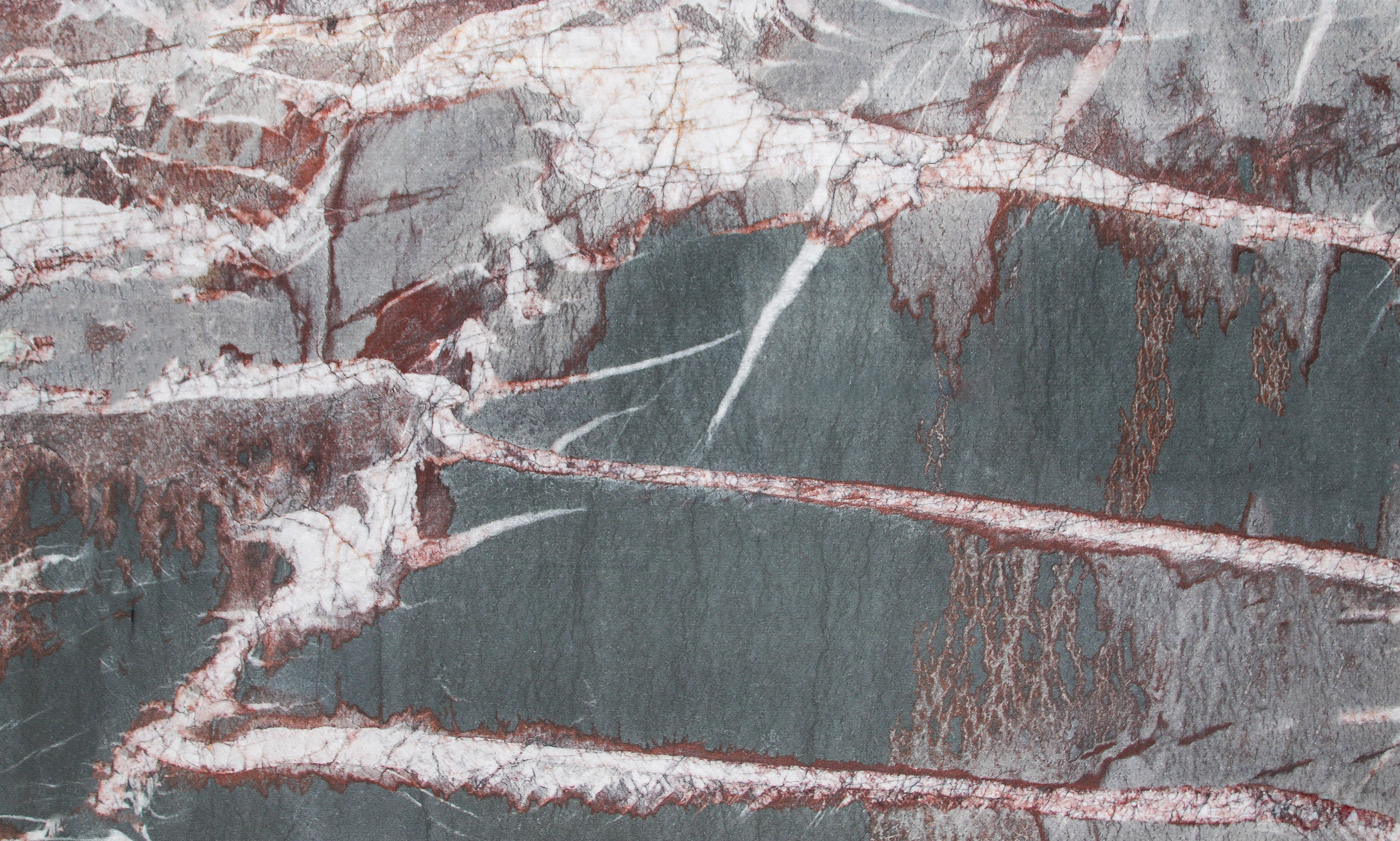 Quarzite brasiliana di un profondo impatto, caratterizzata da un fondo principalmente verde scuro e venature bianche, rosse e marroni. Le ramificazioni irregolari di queste venature contribuiscono a rendere unica qualunque realizzazione, da progetti di ambiente interno all'esterno. Vivamente consigliata in finitura lucida o levigata.