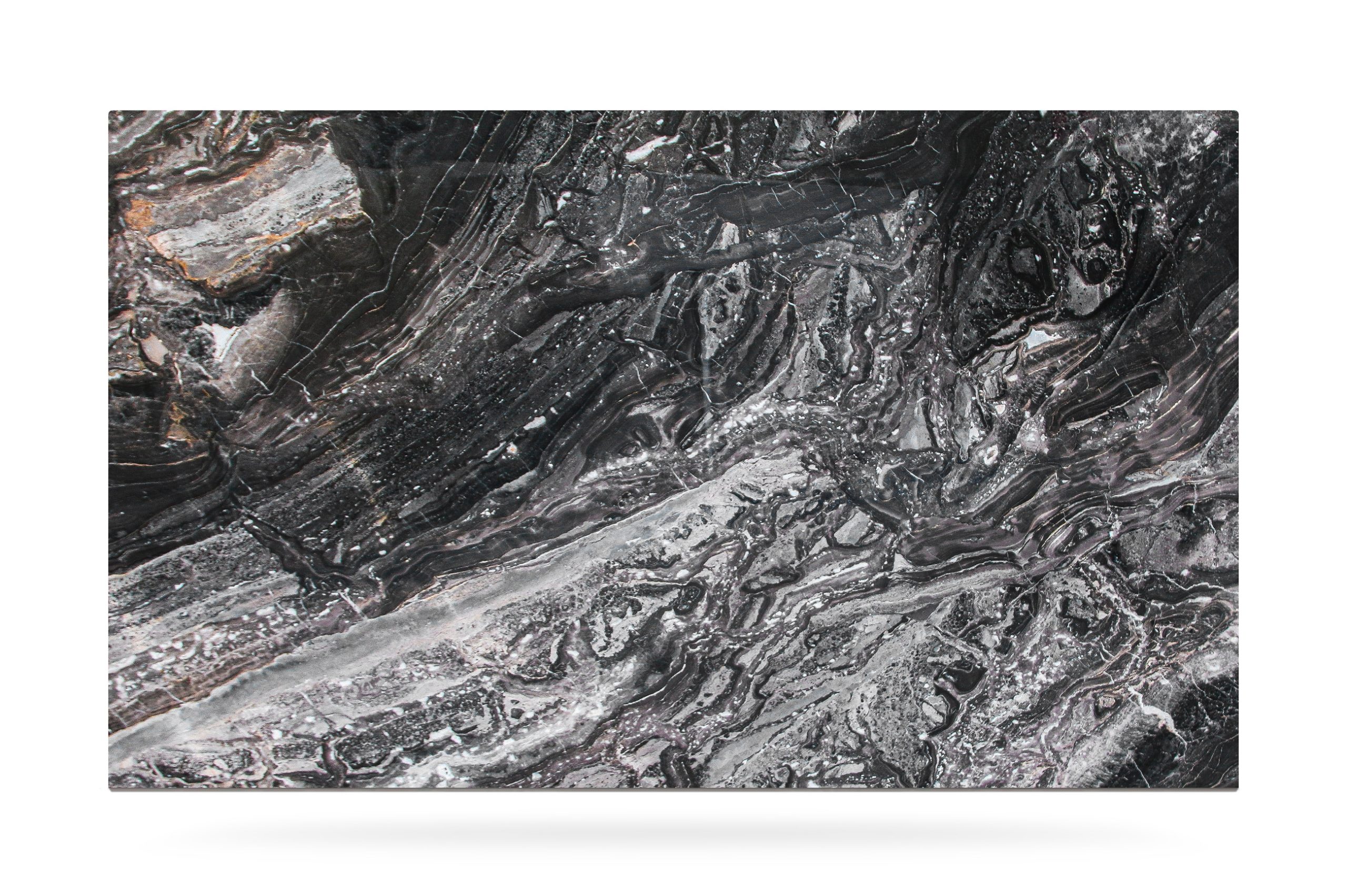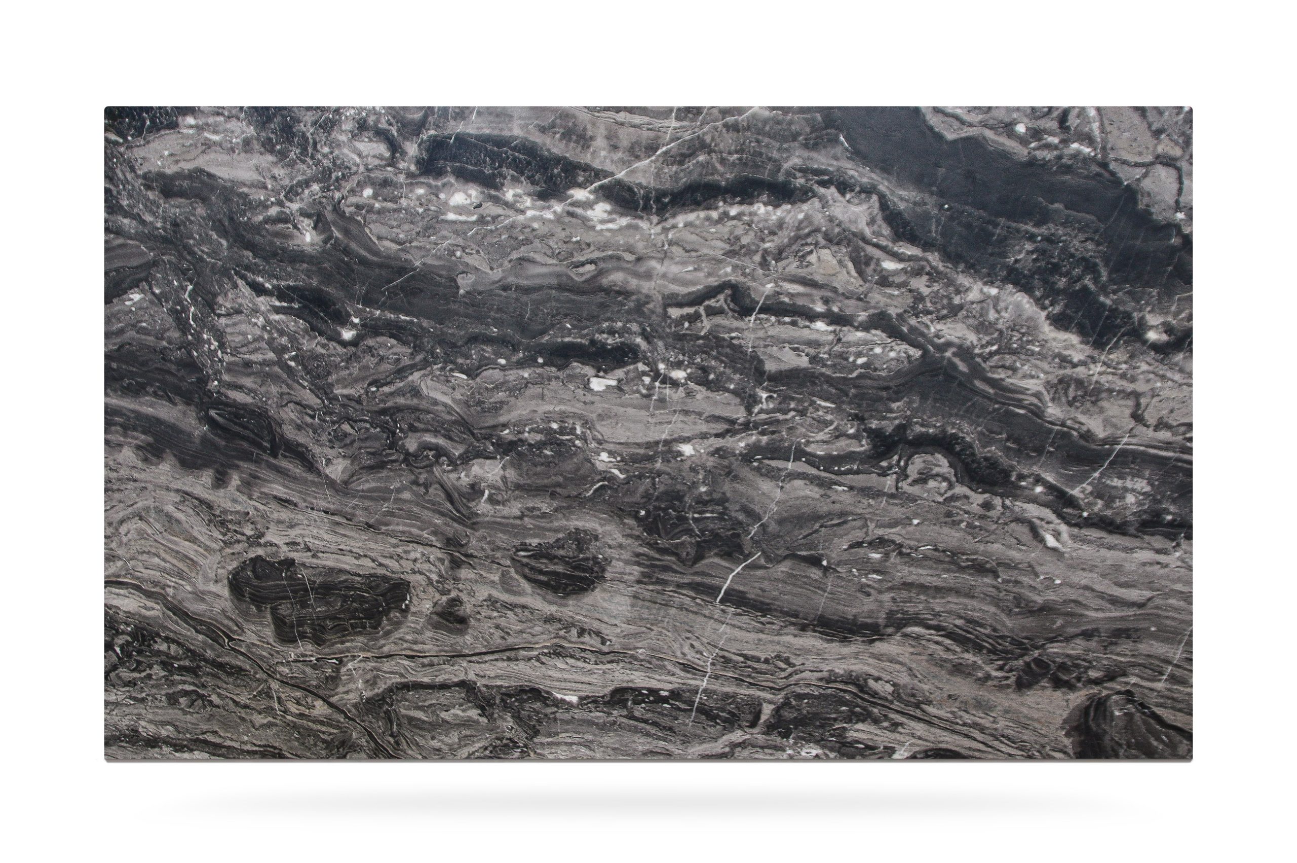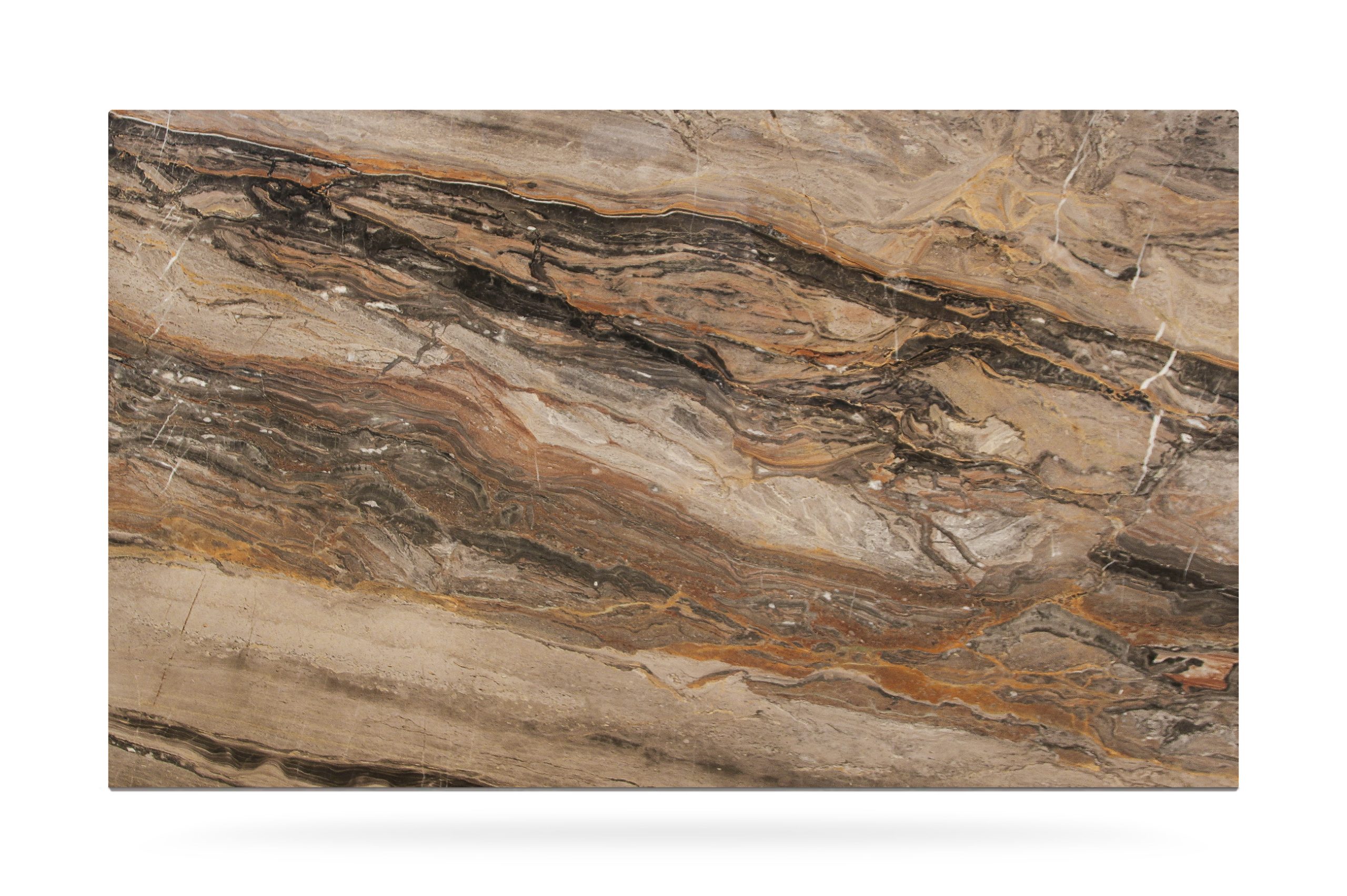 Con tonalità calde, prevalentemente grigie, e venature sinuose di bianco, grigio e oro, ha un aspetto vibrante e sofisticato.